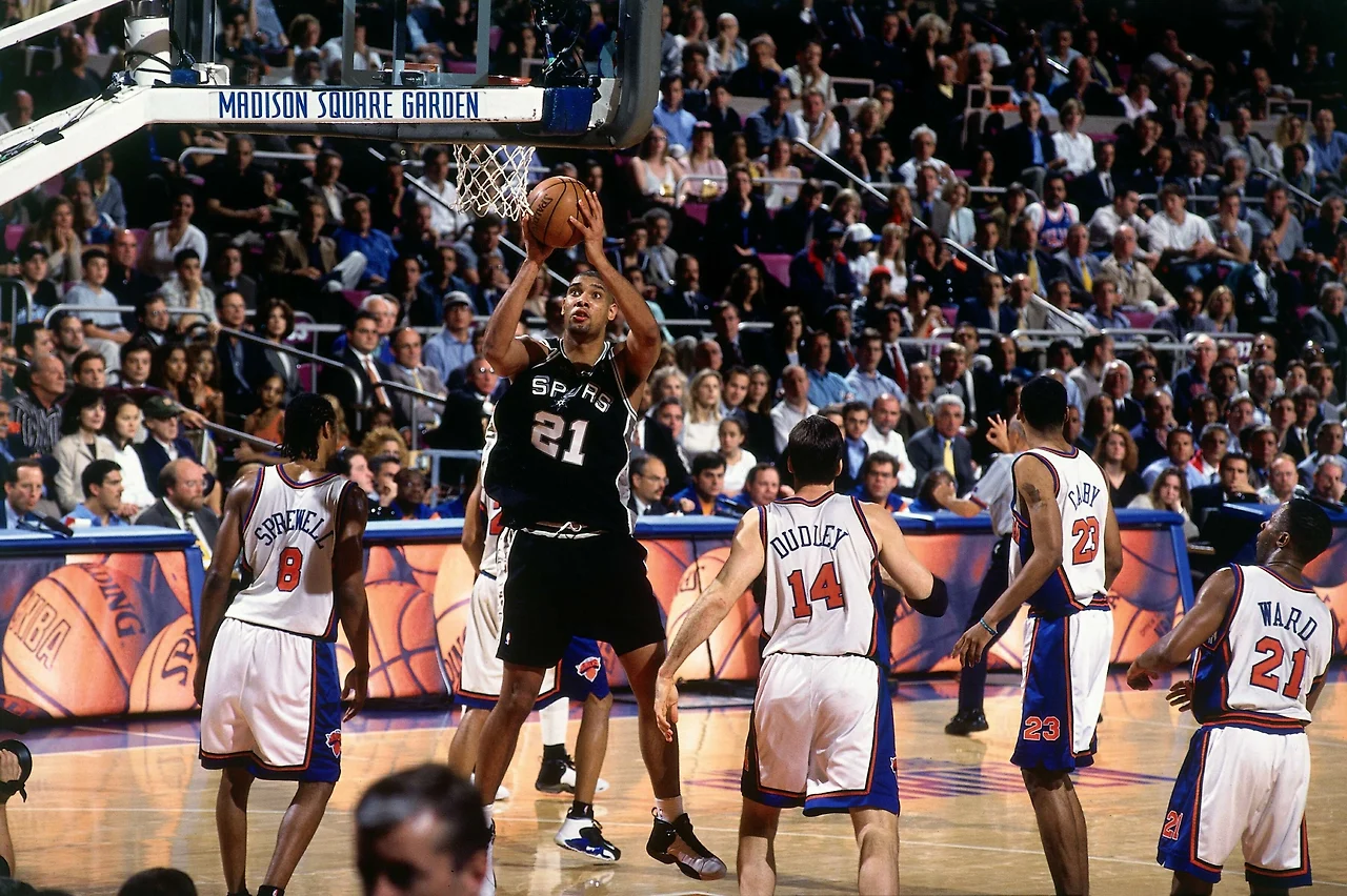 1999 결승전에서 닉스에 남아 있던 빅맨들을 갖고 놀았던 팀 던컨 (출처 : AIRALAMO)