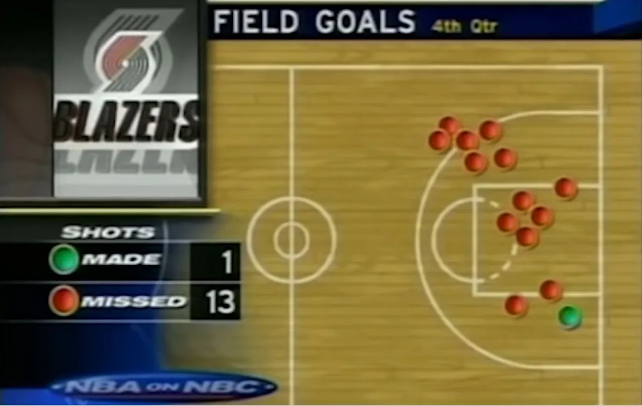 레전드 반열에 오른 블레이저스의 4쿼터 슈팅 차트 (출처 : NBA ON NBC 경기 영상 캡처)