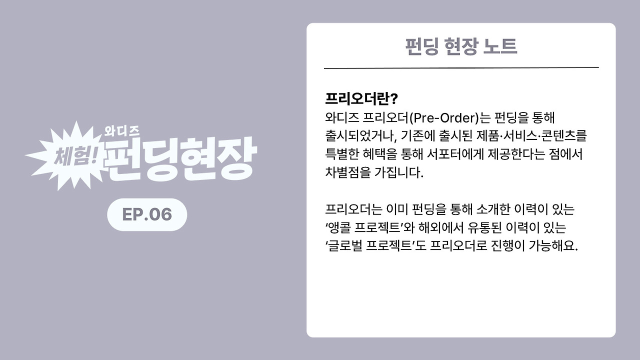 체험 펀딩 현장 2화의 펀딩 노트에서 프리오더를 주제로 다루면서 앵콜도 슥- 배웠었는데,