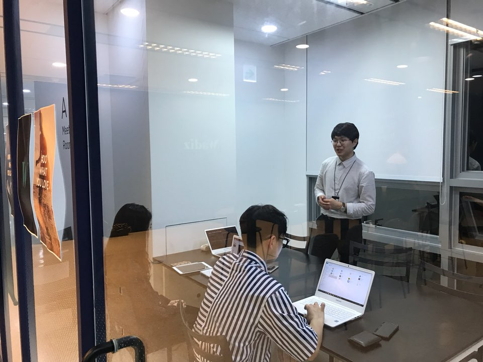 ① 우리는 모바일 오피스, 모바일 워킹을 지향합니다. 각자의 성과를 발표하는 수요일 오전을 제외하고는 사무실로 출근하는 것을 강요하지 않습니다. 오히려 밖에서 그러니까, 현장에서 일을 하는 것을 더욱 장려합니다.