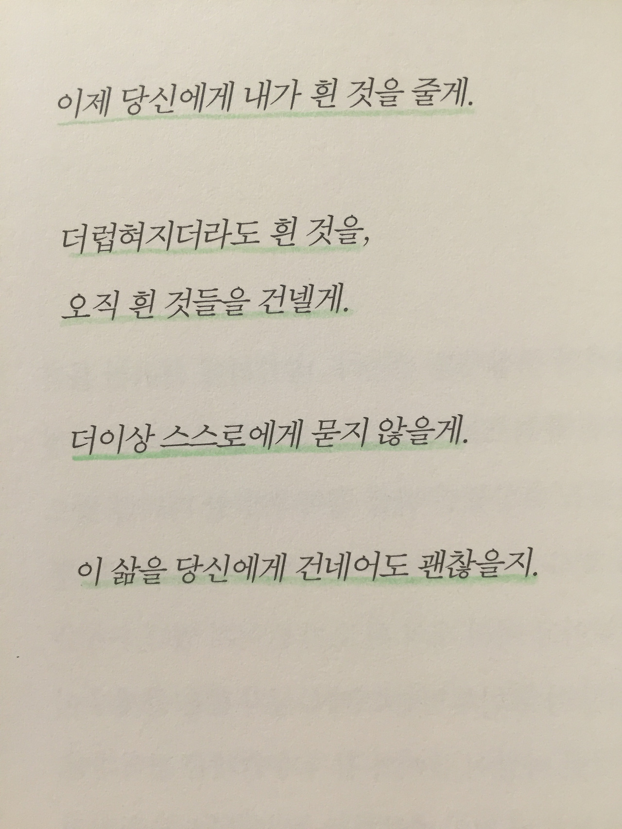 한 단어씩 적어갈 때마다 이상하게 마음이 흔들렸다. 이 책을 꼭 완성하고 싶다고, 이것을 쓰는 과정이 무엇인가를 변화시켜줄 것 같다고 느꼈다. 환부에 바를 흰 연고, 거기 덮을 흰 거즈 같은 무엇인가가 필요했다고.