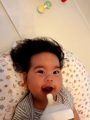 하루가 다르게 활발해져 간다. 앞으로 전진하며 기진 못했도 제자리서 빙글빙글 도는 속도가 빠르고, 악력도 세져 뭔갈 쥐며 쉬이 뺒지 못한다. 조막만한 손으로 꼬집으면 아파서 도망가야 하고, 버둥거리는 뒤꿈치에 맞을까봐 조심하게 되는 내 자신을 발견한다. 새벽에 갑자기 서럽게 울다가 다시 잠드는 일도 반복적이다. 머리카락을 한번도 자르지 않았는데, 이젠 한 번 밀어줘야 하나 싶다.