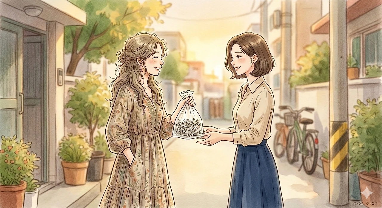수현이 엄마는 멸치 한 봉다리를 건네셨다.