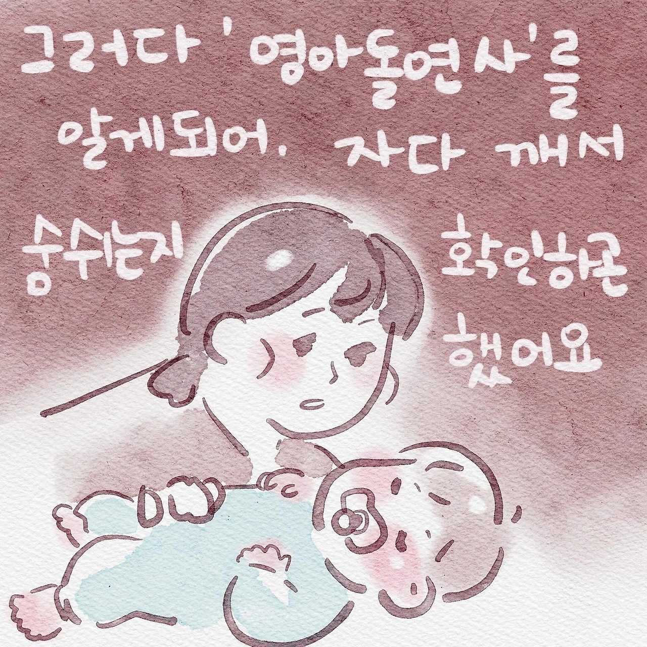 신생아 때는 한 번씩 숨 쉬는지 확인하던 제가 생각나요