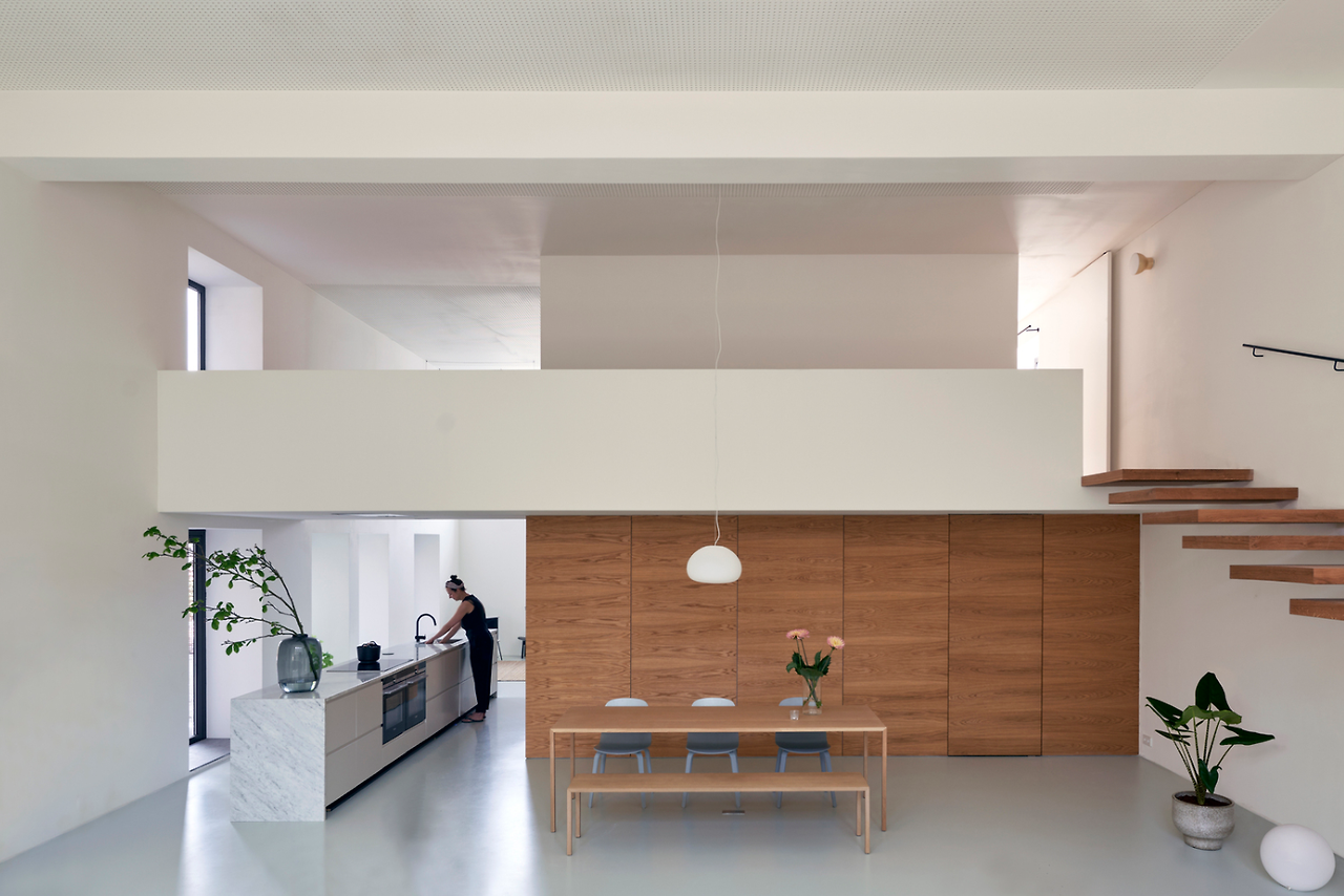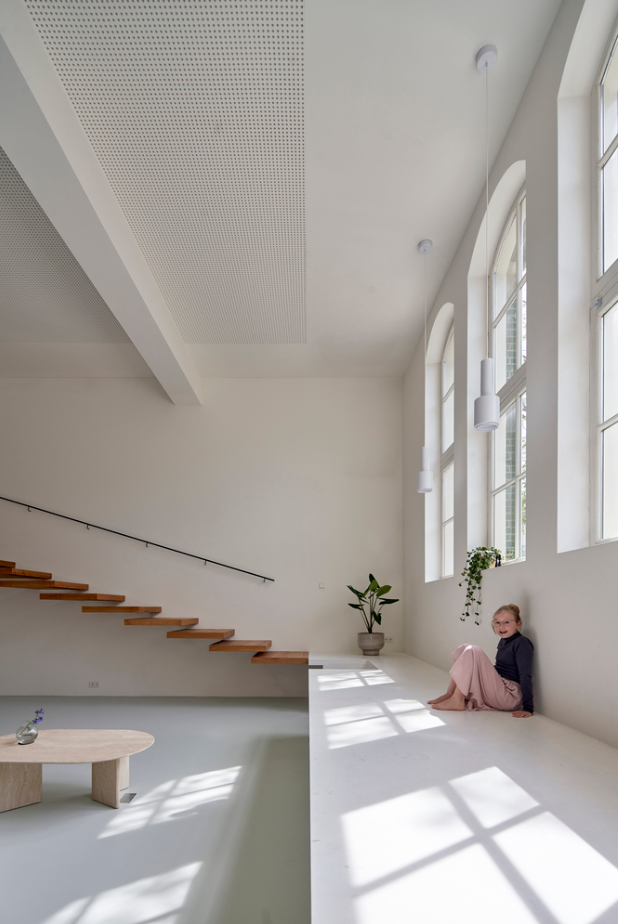 이러한 모습은 우리나라의 툇마루와도 조금 닮은 듯 보여지는데요, 스킵플로어 구조의 공간이 없었더라면 키가 작은 아이는 창문에 닿기 힘들었겠지만, 이 공간으로 인하여 창문에 얼만든지 닿을 수 있어 보이네요^^