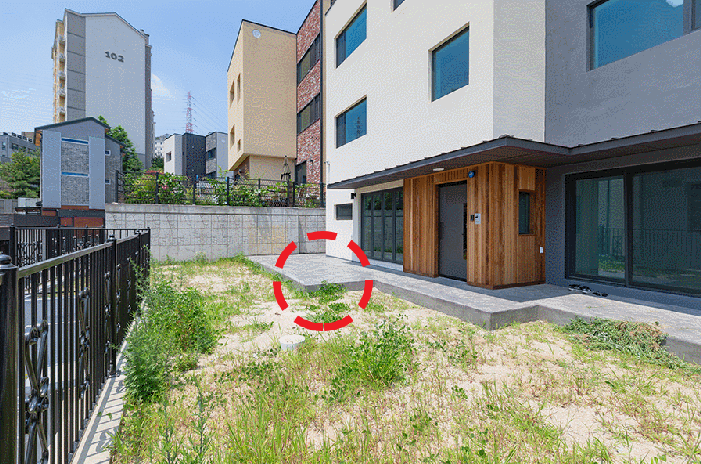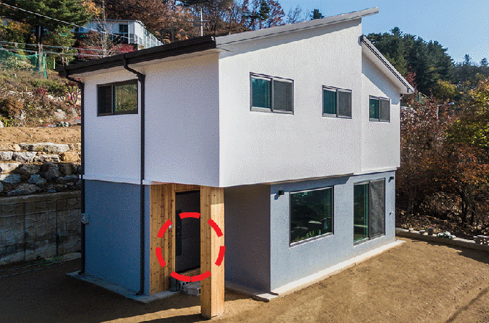 벽면 없이 기둥으로만 설치된 개방형 구조. 건축물 1층에 기둥만 있는 부분을 바로 필로티라고 부릅니다. 이 공간은 보시는 사진처럼 현관이 있을 수도 있고, 주차공간이 자리하게끔 시공도 가능하답니다.