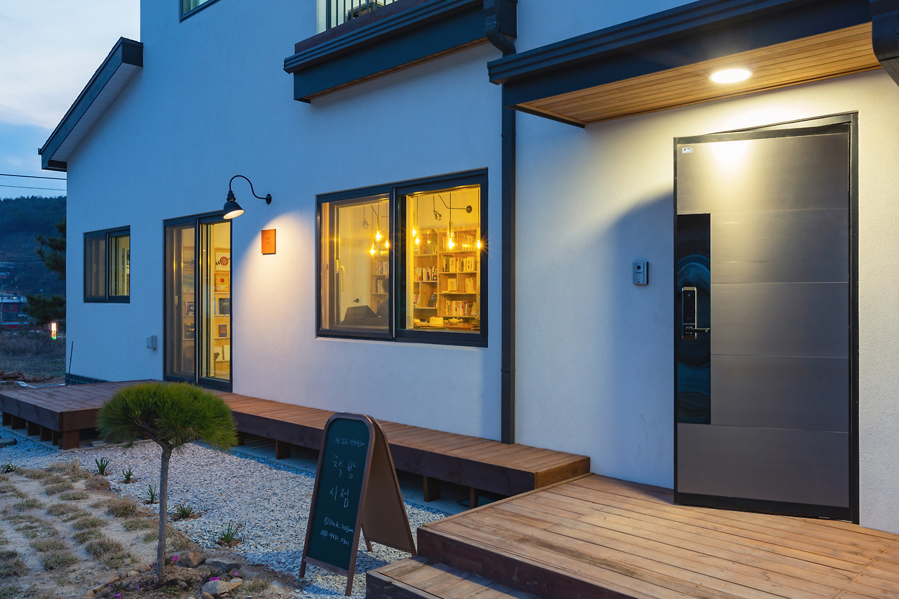 흔히 데크라고 불리는 이 테라스가 없다면, 보통 주택의 토지보다 창호는 조금 더 윗쪽에 위치하기 때문에 테라스가 없다면 마당과 내부를 넘나들 때 굉장히 불편하겠지요. 마당과의 연결성은 물론이며, 휴식을 취할 수 있는 공간이 바로 테라스 랍니다.