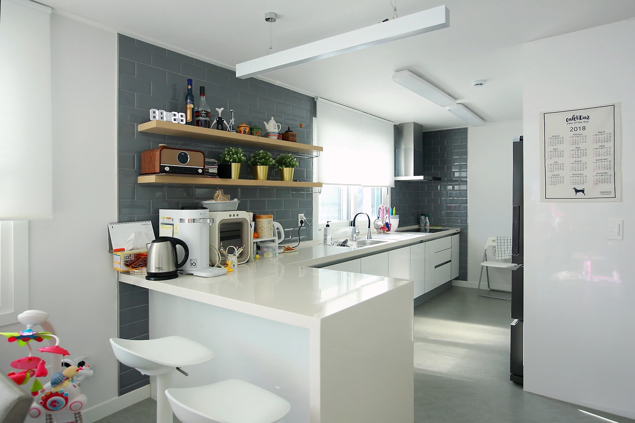 이 집은 철근콘크리트 공법으로 지어진 지상 3층주택입니다. 파벽돌과 징크로 외관에 포인트를 주어 모더낳며너솓 오래 보아도 질리지 않는 외관을 갖추고 있지요. 또한 이러한 형태는 빌라, 상가주택시공으로도 손색없는 디자인입니다. 하지만 오늘 소개하는 완공사례는 삼대가 사는 주택으로 1층은 부모님 세대가 사용하는 공간, 2층은 가족 모두가 사용할 수 있는 공간, 3층은 자녀 세대와 손자가 머무는 공간입니다. 이 공간들이 40평으로 완성이 된다니 상상이 가시나요? 그럼 지금 바로 어떤 주택일지 내부를 살펴보겠습니다.