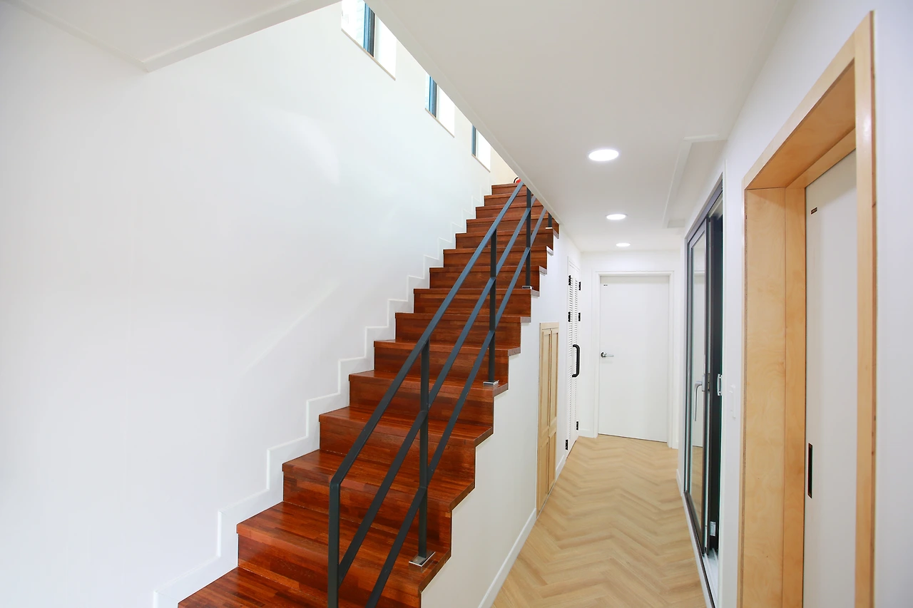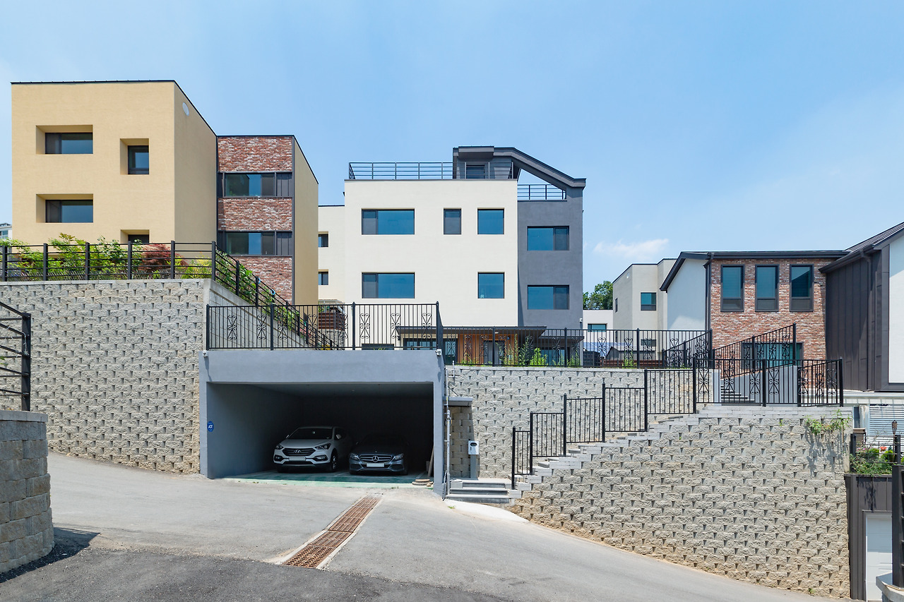 경기도 용인시에 시공된 이 주택은 단독주택마을에 자리하고 있습니다. 단조로우면서 균형감 있는 이 주택은 지하 1층에는 주차장을 두어 주차공간을 확보하였으며, 마당을 두어 야외 활동 또한 자유롭게 할 수 있도록 하였습니다. 그렇다면 이 단독주택의 내부는 과연 어떤 형태로 구성이 되어 있을까요?