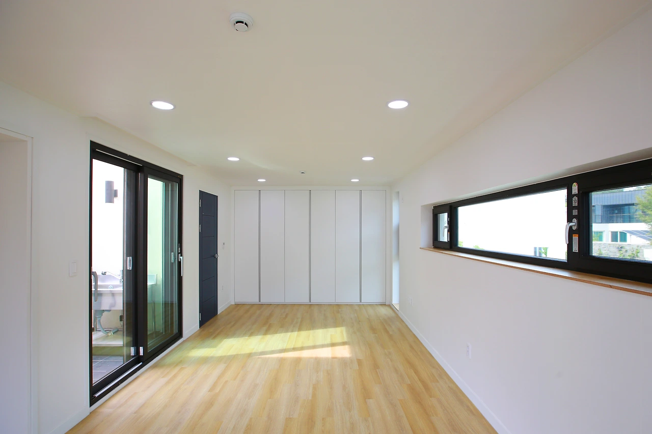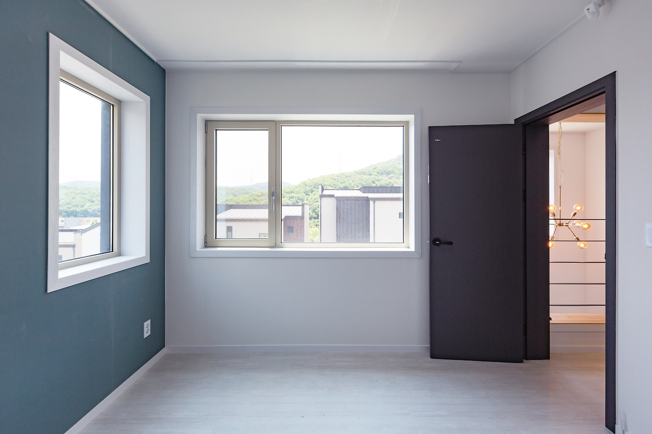 침실의 모습입니다. 층별로 사용하는 공간을 나누어 1층 가족공용공간을 제외하고 2~4층은모두 개인 공간으로 이루어져 있지요.