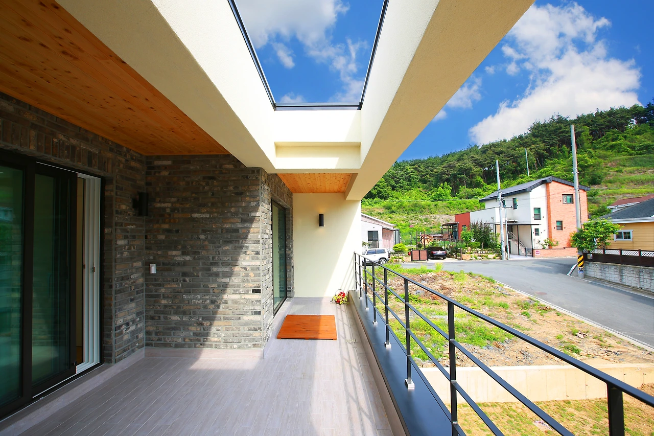 그리고 이 주택의 또 한가지 매력, 바로 2층에 있는 테라스입니다. 이 테라스는 하늘을 있는 그대로 볼 수 있다는 큰 장점이 이랍니다.