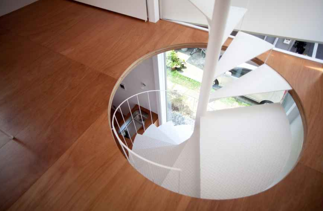 집 내부 중앙에는 빛과 바람이 스며들 수 있는 공간이자 층을 쉼없이 이어주는 나선형 계단이 있습니다. 협소주택은 어떠한 공간을 구성하게 된다면 하나의 역할이 아닌 두, 세가지의 역할을 할 수 있어야 하는 것은 기본이겠지요.