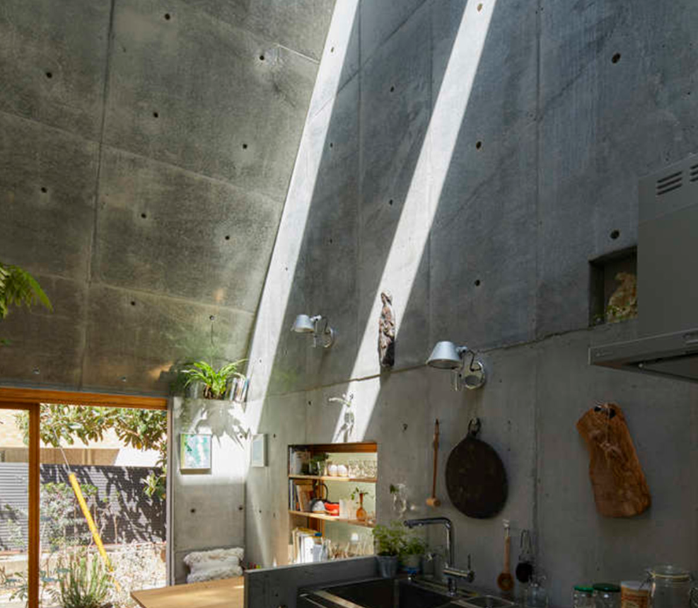그리고 뒷쪽으로는 작은 정원이 자리하고 있으며, 채광은 지붕에 있는 햇빛이 협소주택 내부로 내려오게 되지요.