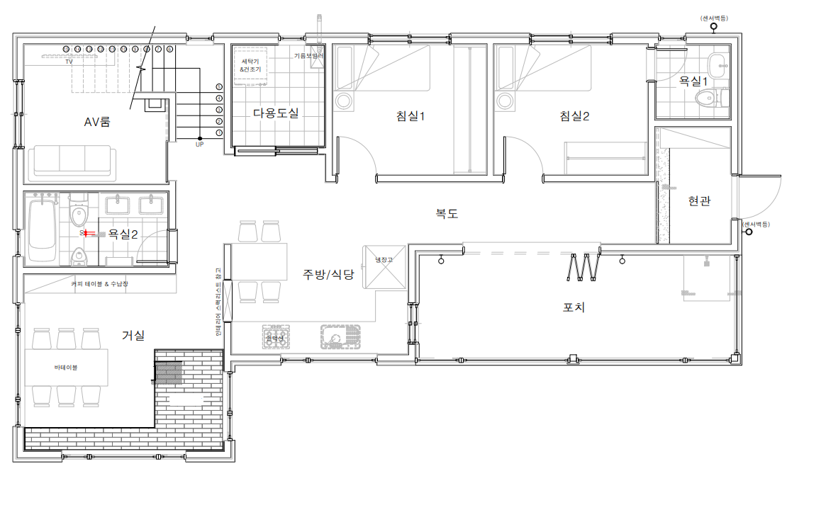 그리고 그 옆에 있는 이 공간. 앞서 보여드렸던 주방에서도 살짝 보여진 공간인데요! 이 곳은 AV룸입니다. 보통은 TV를 시청하는 공간이자 가족 공용공간이 바로 '거실'이지만, 건축주님께서는 가족이 오로지 함께 소통하고 휴식을 취하는 공간과, TV를 시청하는 공간이 별도로 분리되고자 하셨기에 공간을 분리한 것이지요. 건축주님의 라이프스타일에 따라 분리된 공간입니다.