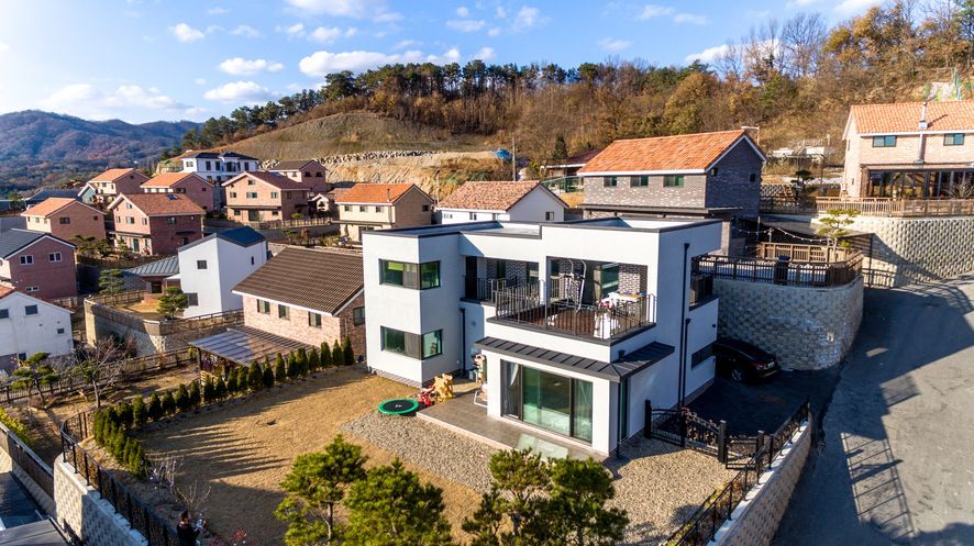 경기도 양평의 전원주택 단지에 시공된 사례입니다. 주변이 굉장히 깔끔하게 정돈이 되어 있기 때문에 인프라는 물론이며, 양평에 위치해 있어 맑은 공기와 아름다운 풍경까지 즐길 수 있는데요, 프라이버시를 지켜주는 마당과 1층은 원활한 소통을 할 수 있으며, 2층은 양평의 아름다운 풍경을 감상할 수 있도록 시공되었습니다.