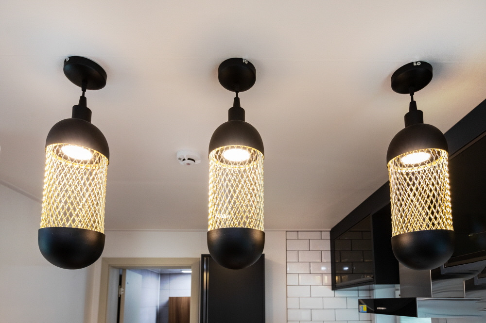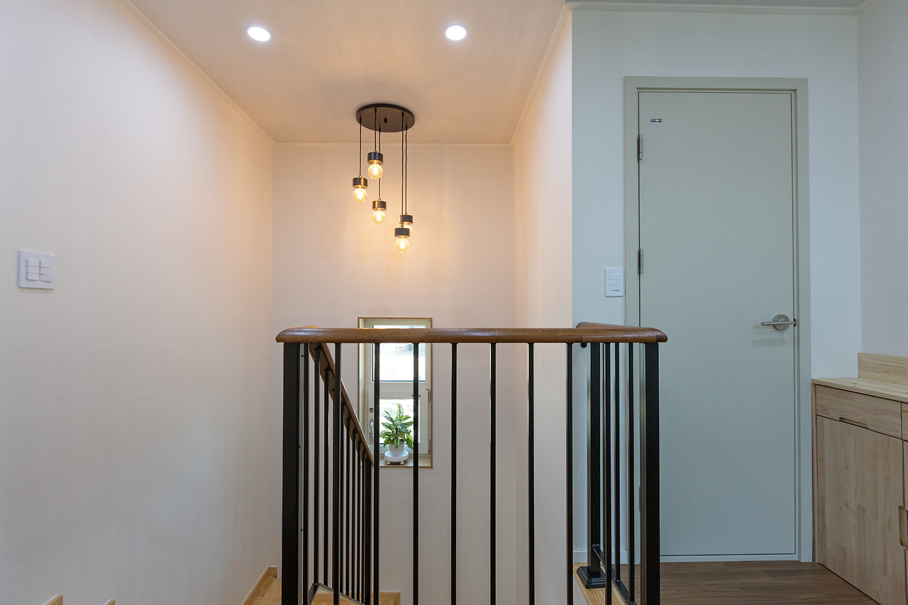 팬던트 조명의 종류는 굉장히 많습니다. 한글주택에서 시공한 사례만 보아도, 예쁜 팬던트로 구성된 조명을 자주 만나보실 수 있는데요, 심플한 팬던트부더 화려한 팬던트까지 종류가 많아 건축주님의 취향에 맞게 선택할 수 있지요. 팬던트 조명은 포인트가 되면 좋겠다고 생각되는 공간에 시공하시면 되는데요, 주로 주방, 거실, 계단실 천정에 시공하는 사례를 많이 접하게 됩니다.