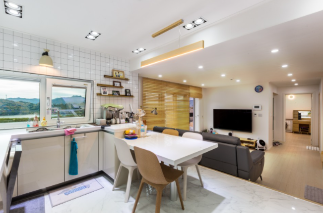 주방 전면으로 설치된 창호로 음식 조리 시의 내부 환기를 고려하고, 다이닝의 가구 배치로 거실과 주방의 공간을 나눌 수 있도록 설계하였습니다.