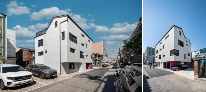 오래된 동네에 새로 새워진 도심 속 노후주택의 대변신. 화이트&블랙 색상이 사용된 모노톤의 외관은 단아하고 세련된 분위기가 느껴집니다.