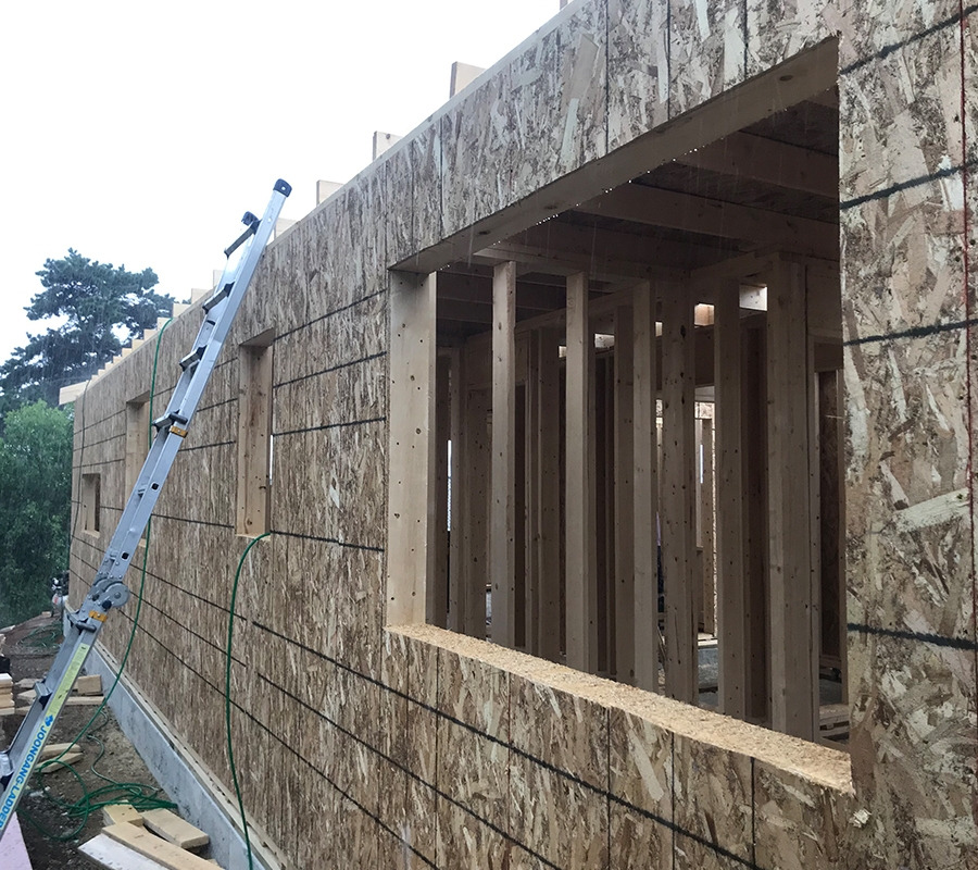 벽체 구조재가 모두 세워지면, OSB 합판을 시공하는데요.