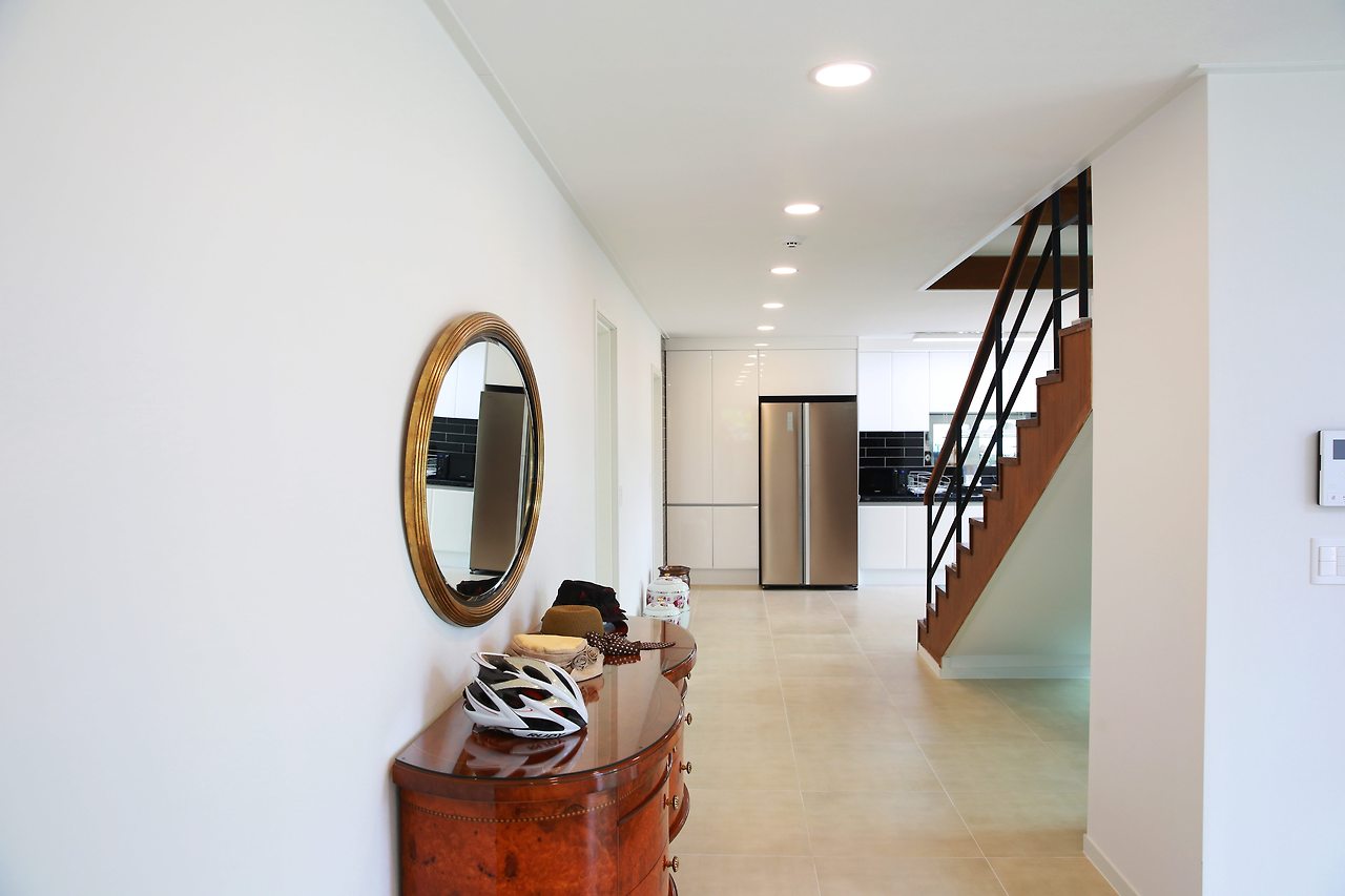거실과 주방의 분리가 확실히 된 모습이 보이시나요? 스킵플로어로 거실과 주방을 분리한 형태는 주택 내부가 조금 더 특별해 보이는 느낌을 주는 것 같습니다. 아파트, 다세대주택에서는 누릴 수 없는 스킵플로어도 고려해 보시면 좋겠습니다.
