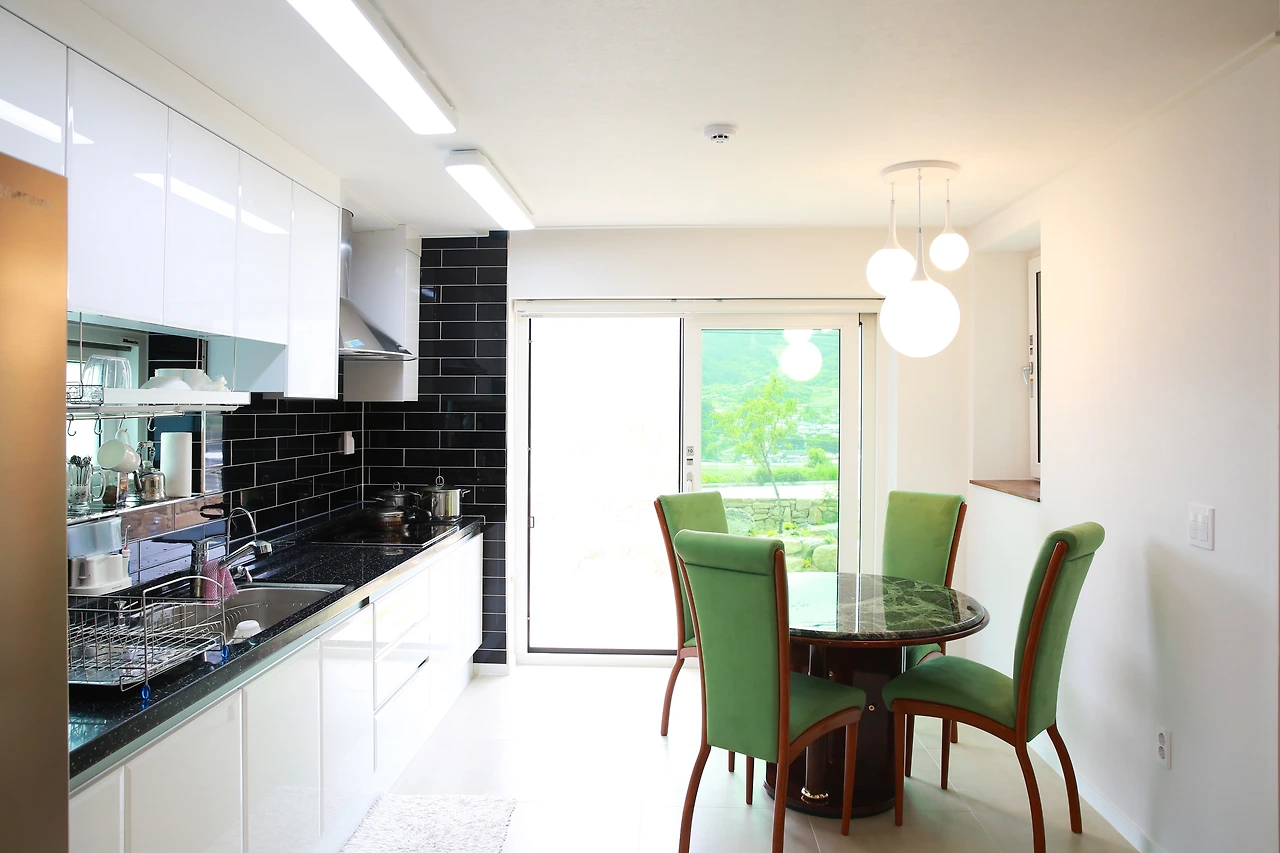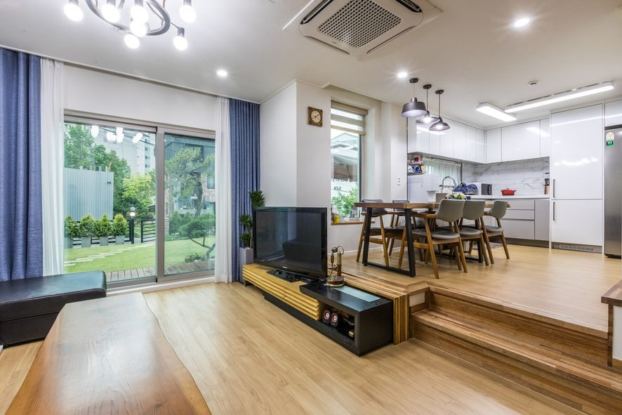 아파트는 물론이며, 다세대주택 등에서도 쉽게 찾아볼 수 있는 형태인데요! 주방과 거실이 바로 연결되어 있으며, 이러한 형태는 동선이 좋다는 장점과, 주택의 크기를 고려하여 시공됩니다. 아무래도 30-40평대 단독주택에서 가장 많이 찾아볼 수 있지요! 마당과 연결되는 큰 창 하나로 주방, 거실까지 커뮤니케이션이 용이하다는 장점이 있습니다.