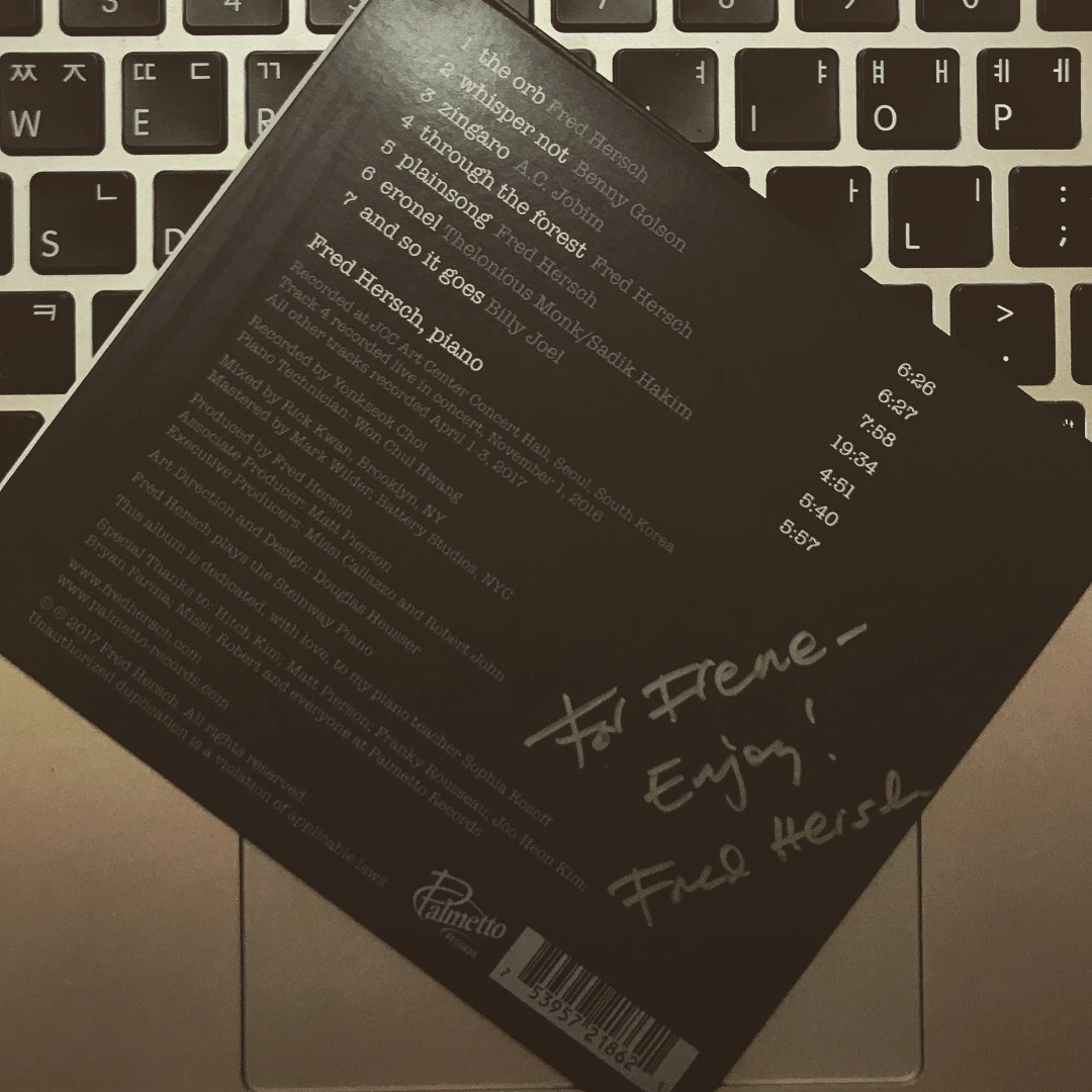 무대에 오를 때 다소 긴장된 얼굴이 컨디션이 별로 안 좋은가 살짝 걱정이 됐다. 하지만 후반으로 갈수록 연주가 점점 풍성해지고 넓은 홀을 꽉 채우는 듯했다. 공연 타이틀이기도 한 <Open Book>과 이전 앨범의 곡들, 'Round Midnight 같은 귀에 익숙한 재즈와 팝이 연주되었다. 내 소양이 부족한 탓일 수도 있지만, 중간 이상은 들어야 '아, 그 곡이구나' 할 정도로 프레드 허쉬만의 새로운 음악으로 느껴졌다. (특히 조니 미첼의 Both Sides Now는 많은 이들의 눈물을 훔치게 했다고 한다. 섬세한 감성의 소유자들.. 개인적으로는 Wouldn't It Be Loverly라는 곡이 뭉클했다.)