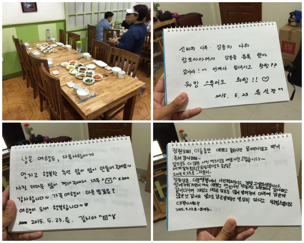 꺼꽁에서 봉사팀으로부터 받은 후원금 중 남은 돈은 약 150달러, 이번에 여행객들을 통해 받은 것까지 하면 총 500달러 (한화 약 58만 원)이라는 엄청난 여행자금을 선물로 받았다. 당시 나의 생활 기준 동남아에서 누군가에게 의존하지 않고 최소 한 달 반을 버틸 수 있는 어마어마한 액수였다. 누군가는 비웃을 수도 있는 작은 돈일 수도 있으나, 여행 초기 7만 원으로 출발했던 나는 이렇게 부자가 됐던 순간이 없었기 때문에 감격의 기쁨을 숨길 수가 없었다. 그냥 너무나도 감사했다. 해드릴 수 있는 것이 사진 뿐이라 그저 죄송했을 뿐이다.
