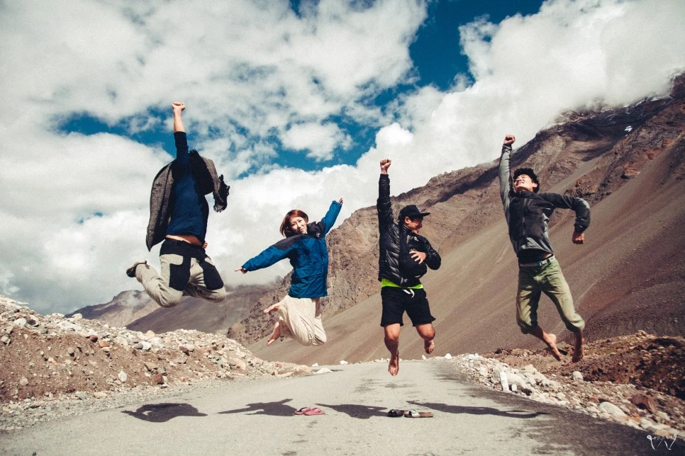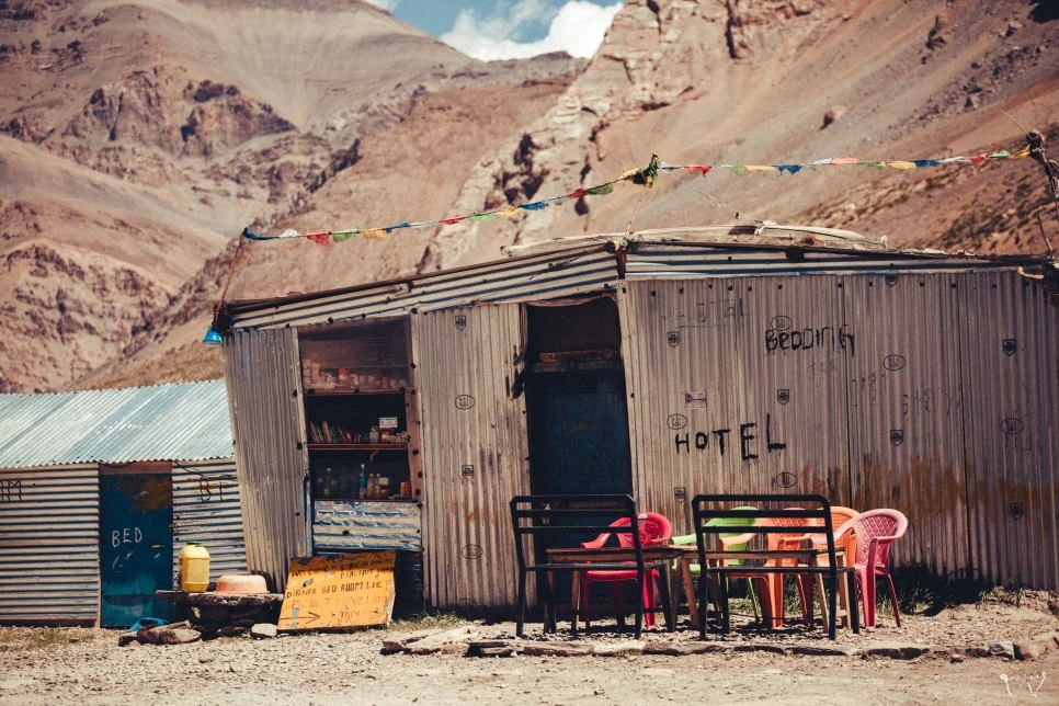 저 멀리 마을이 보이기 시작했다. 드디어 도착했다는 생각에 설렜지만, 통행료를 받는 간이 톨게이트였다. 말이 톨게이트지 두 명의 현지인들이 여행자들의 신분을 일일히 확인하고 기록하며 통행료를 받고 있었다. 라다크를 비롯한 잠무 카슈미르 지역은 여전히 파키스탄, 중국과 전쟁중인 접경지역이고 환경보호차원에서 여행자들에게 세금을 받는다고 한다. 당시에는 인터넷에 검색도 되지 않고 확인할 방법이 없어서 잠깐동안 실랑이를 벌였다. 얼마 되지 않는 돈이지만 예상에 없던 돈이라 기분이 나빴기 때문이다. 워난 인도에는 워낙 사기가 많으니까. 하지만 시간을 더 지체하면 숙소를 찾을 때 고생을 하게 된다. 통행세를 빨리 내버리고 발걸음을 재촉였다.