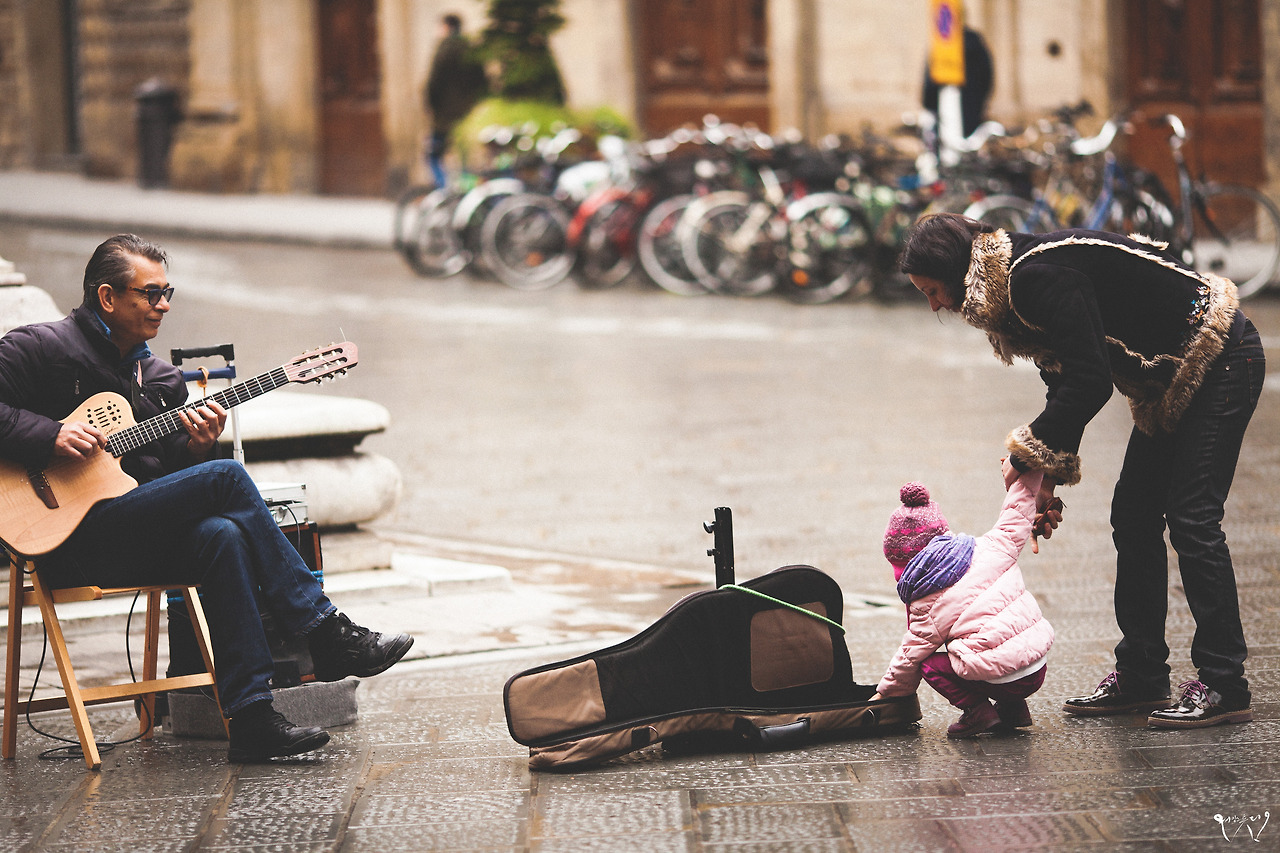 어느날, 버스킹을 하는 아저씨에게 한 꼬마아이가 엄마 손을 잡고 걸어오는 것이 눈에 보였다. 본능적으로 10초 후에 생길 장면이 떠올라서 카메라를 들었다. 아뿔싸, 그런데 하필 갖고 있던 렌즈가 135mm 망원단렌즈, 그 모습을 담으려면 조금 더 뒤로 가야했다. 하지만, 뒤에는 건물이 있어, 더이상 뒤로 갈 수가 없었고, 건물 벽에 몸을 바짝 붙이고 뷰파인더에 눈을 댔다. 역시나 예상대로, 위와 같은 장면이 사진에 담겼다. 다른 렌즈가 있었다면, 건물이 뒤에 없었다면, 조금 더 잘 담았을 수 있겠지만, 그래도, 저 순간을 예상하고 담았다는 사실 자체가 기뻤다. 세계여행을 하며 담은 사진 중 가장 좋아하는 사진 중 하나가 됐다.