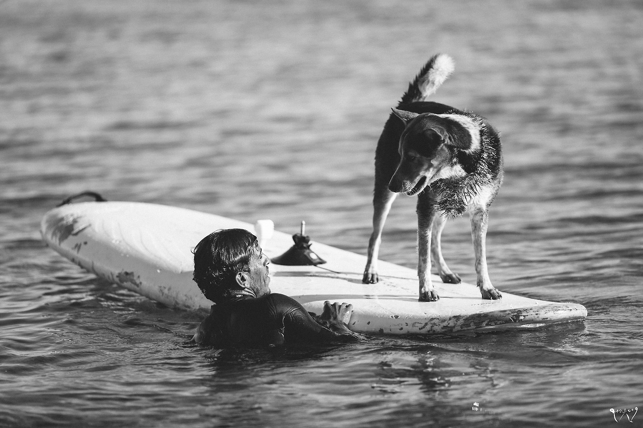 강아지가 용기를 내어 서핑보드 위로 올라갈 수 있었던 것은 주인을 사랑하고 믿었기 때문이 아니었을까. 그럴일이 있을까 하지만, 강아지가 만일 다른 누군가에게 보여주고 싶어서 만용을 부렸다면, 오히려 자만심에 물에 빠졌을지 모를 일이다.