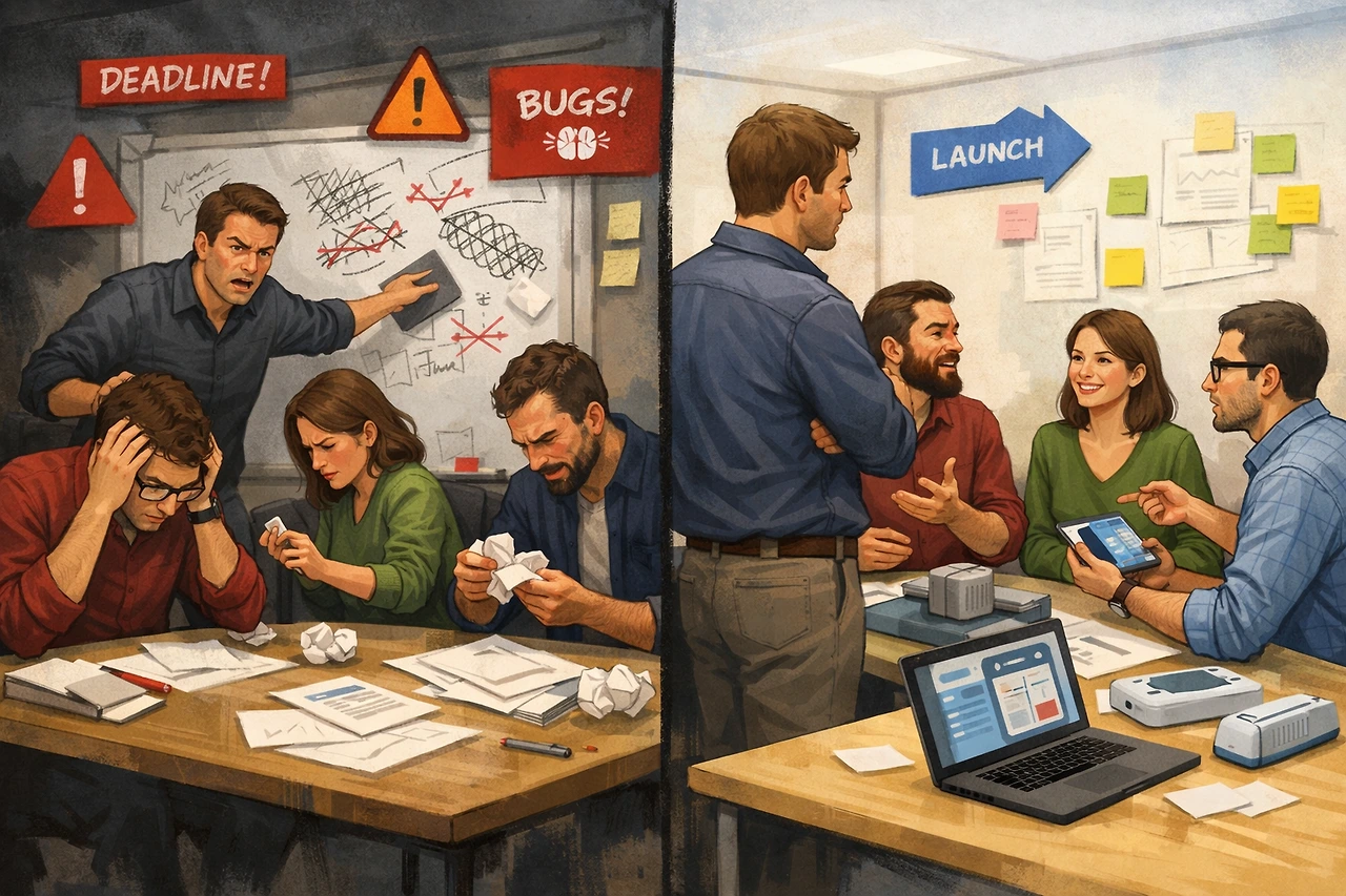 조직 차원의 설계 기준이나 사고 프레임이 쌓이기보다는, 특정 인물의 판단이 관성처럼 이어진다. 제품 스터디나 시장 분석은 문화로 자리 잡지 못하고, 경쟁사의 신제품을 분석하거나 우리 제품의 경쟁력을 토론하는 시간은 늘 우선순위에서 밀린다. 당장 눈앞에 있는 개발 일정이 더 급하기 때문이다.