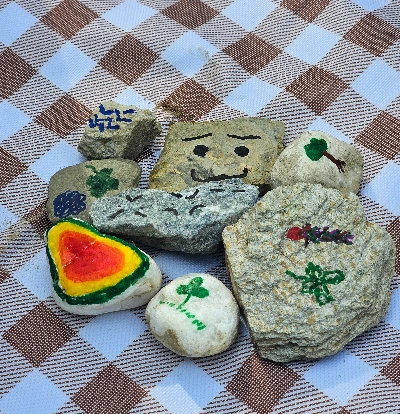 작업이 끝나자, 자신의 돌멩이에 담긴 이야기를 한 명씩 나누기 시작했다.