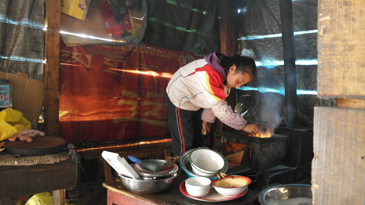 들어가 보니 빵 종류는 없다. 컵라면을 발견하고, 비록 내가 좋아하는 맛은 아니지만, 요기를 할 겸 여기서 먹을 수 있는지 물어본다. 예쁘게 생긴 젊은 엄마(진짜 미인.. 사진을 못 찍은 게 아쉽다)와 두 딸이 함께 있었는데, 첫째 딸이 컵라면을 먹을 수 있다고 대답한다. 제대로 의사소통한 게 아니라, 얼굴 표정과 손짓으로 겨우 소통했다. 나는 당연히 뜨거운 물이 구비되어 있는 줄 알고, 돈을 지불하고 앉아 기다리는데 엄마가 첫째 딸에게 뭐라 뭐라 말을 하더니 그 아이가 나무를 가져다 불을 지피기 시작한다.