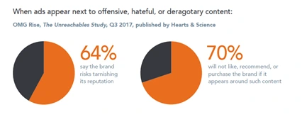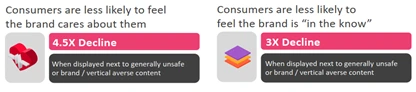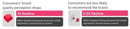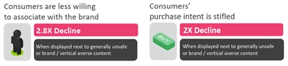 - 미국 *4As의 조사에 따르면 소비자의 거의 70%가 의심스럽거나 안전하지 않은 콘텐츠 근처에 노출되었을 때 브랜드의 호감도, 추천의향 및 구매의향이 급격히 줄어든다고 한다.