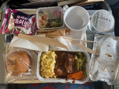 승무원의 다른 느낌에 나름 색다른 기내식을 기대했지만 '오리온 후레쉬베리' 보고 그런 거구나 했다.