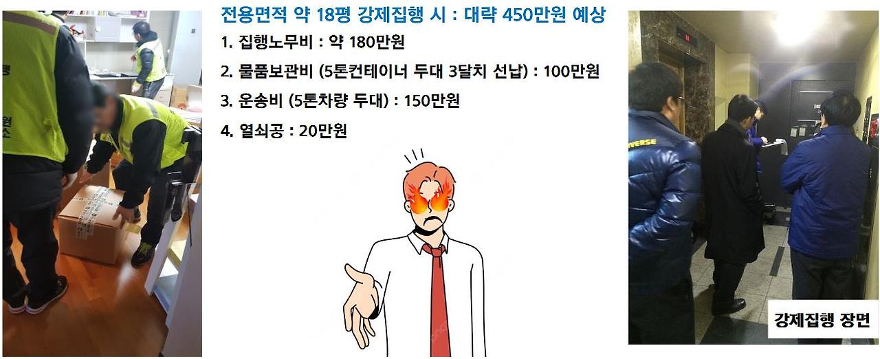 하지만 비용과 시간이 많이 드는 강제집행은 되도록 무조건 피하라고 하고 싶습니다.