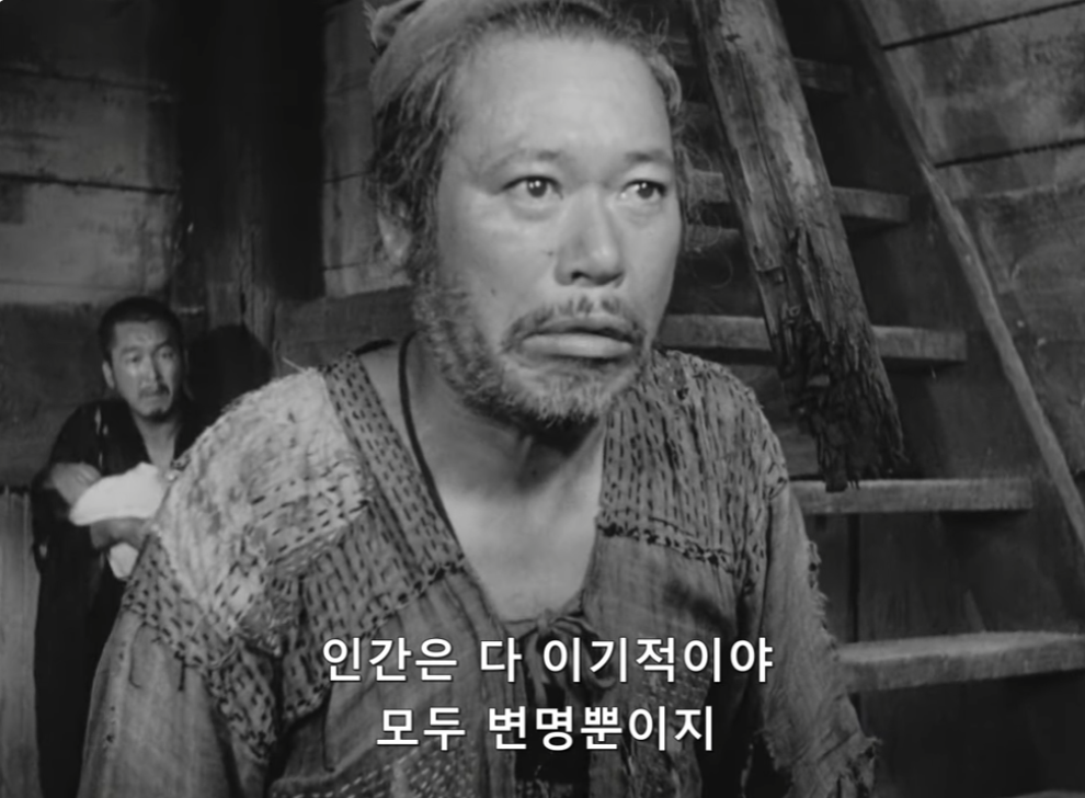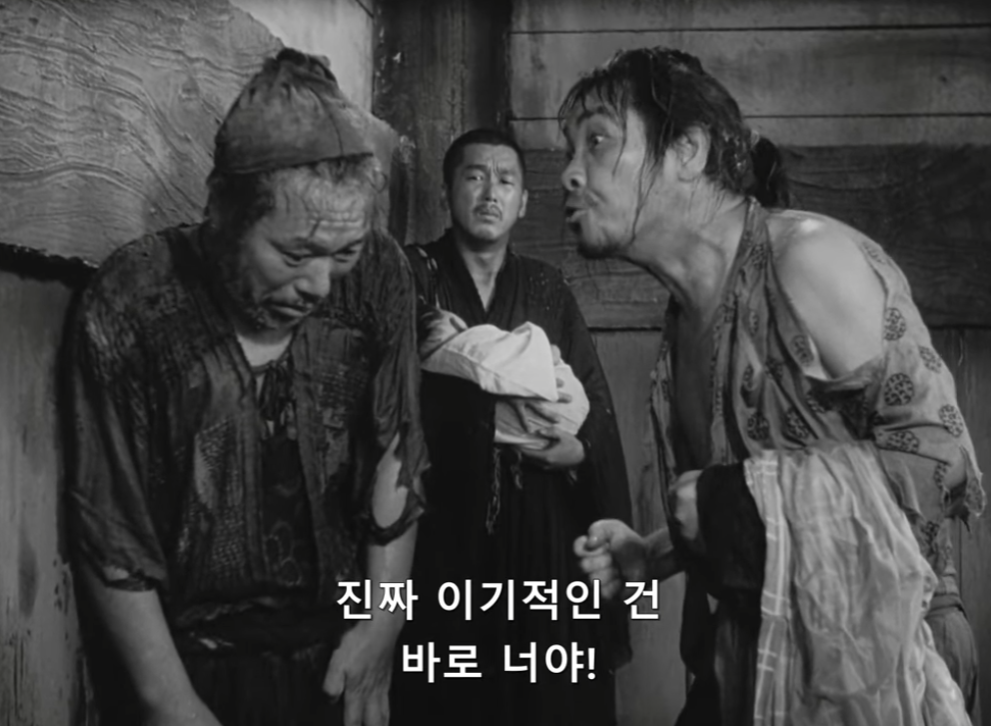 소설에서는 라쇼몽 밑에서 이야기하는 승려, 나무꾼 및 비를 피하는 행인이 없습니다. 감독이 만들어낸 것이지요. 감독이 진정으로 하고 싶은 말을 이 셋의 대화를 통해 관객에게 전달하고 싶었던 것으로 보입니다.