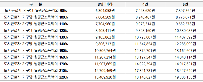 [2024년 기준, 전년도 도시근로자 가구당 월평균소득 기준]