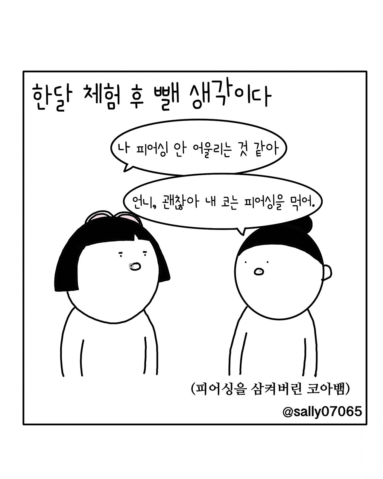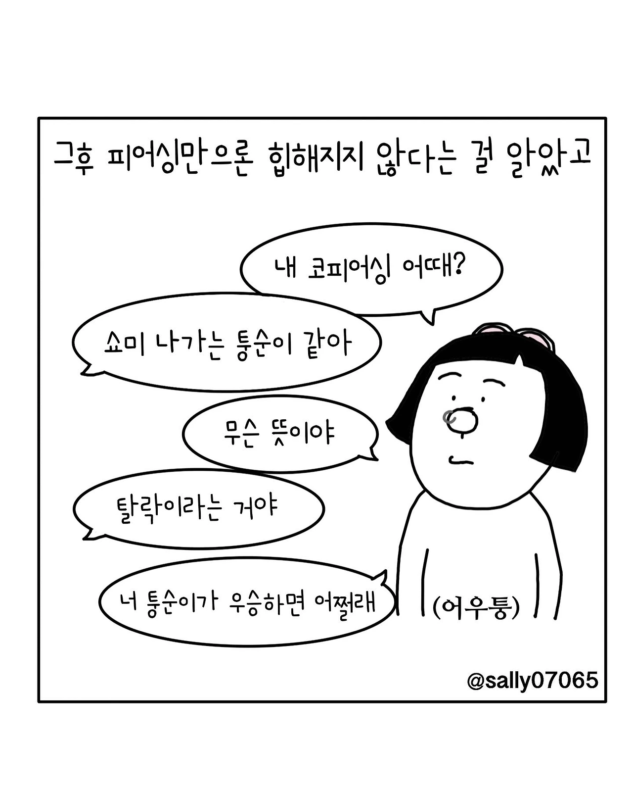 인스타계정sally07065에서 일상툰을 올리며, 블로그운영(밑 url 주소), 책 ‘내향적인 사람 중 가장 외향적인 사람’을 썼습니다