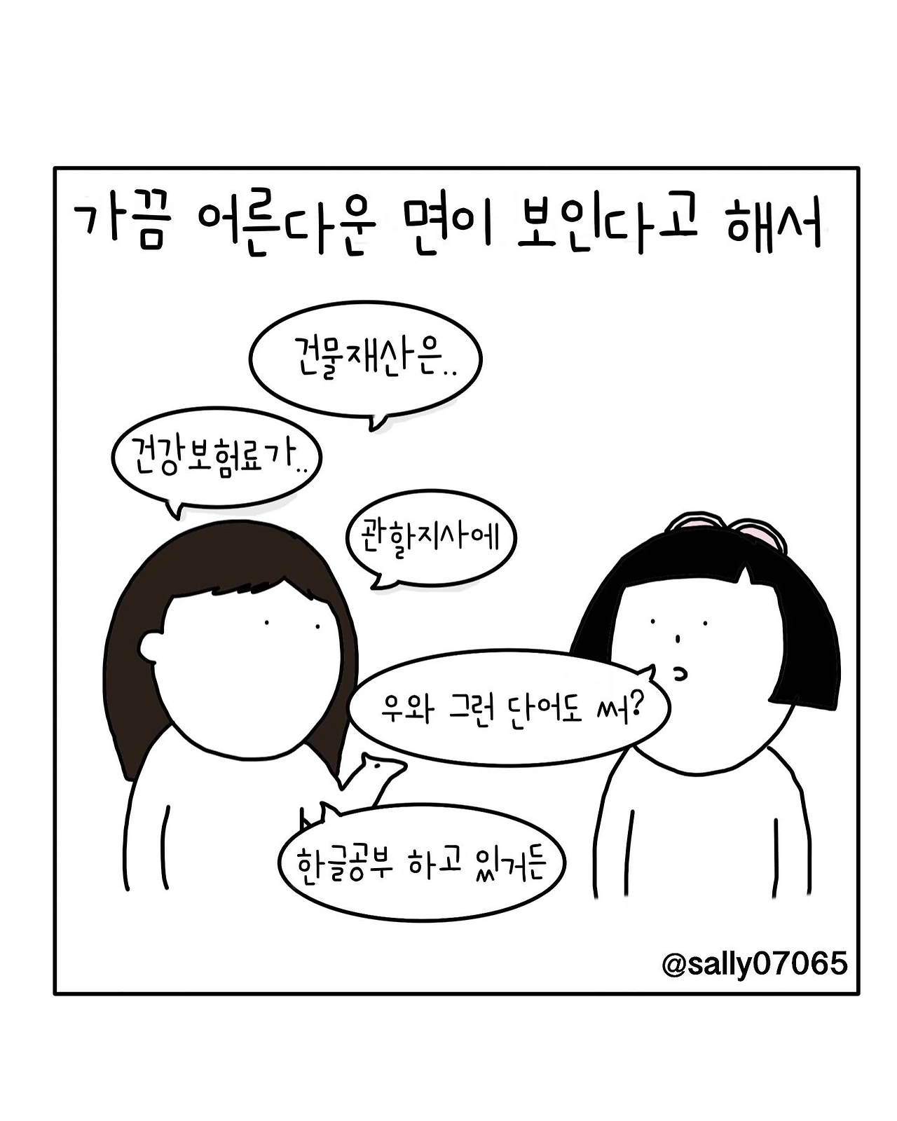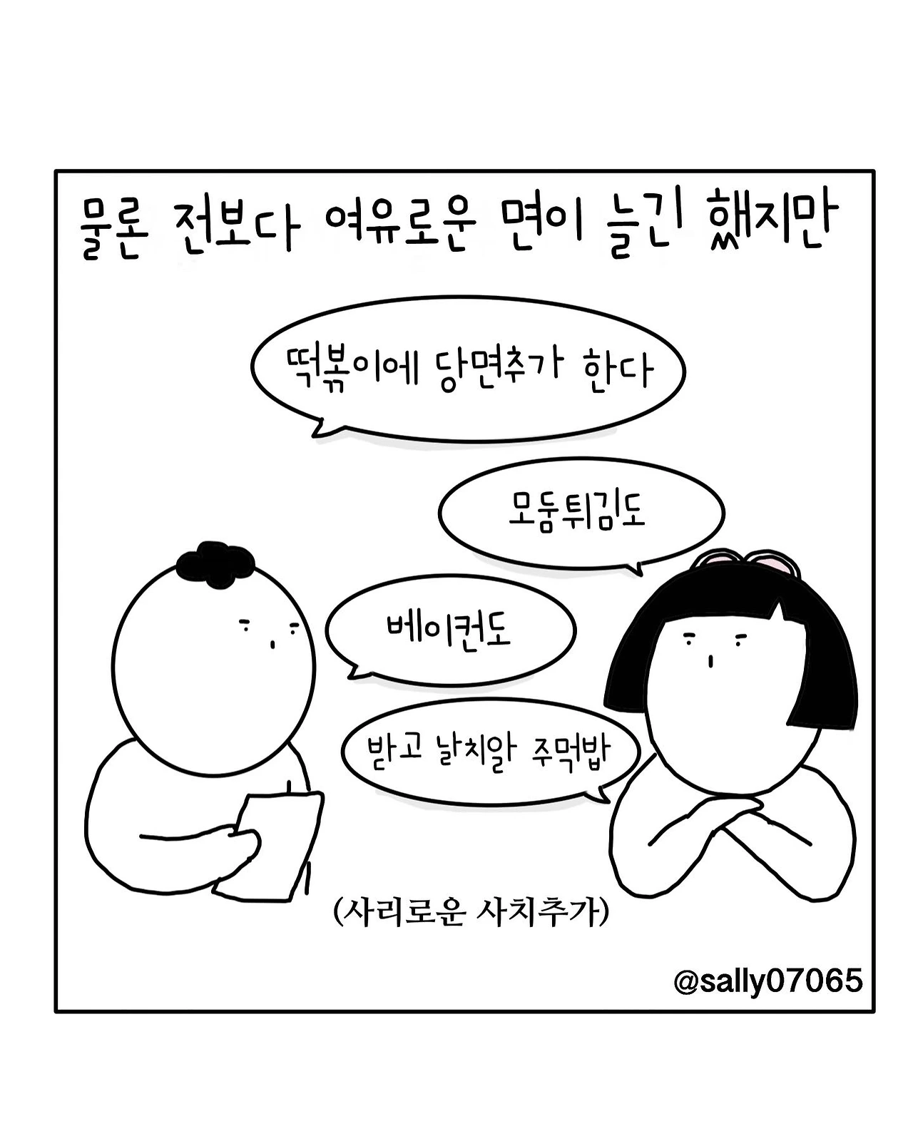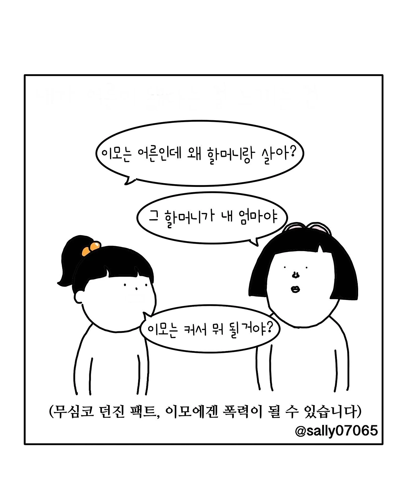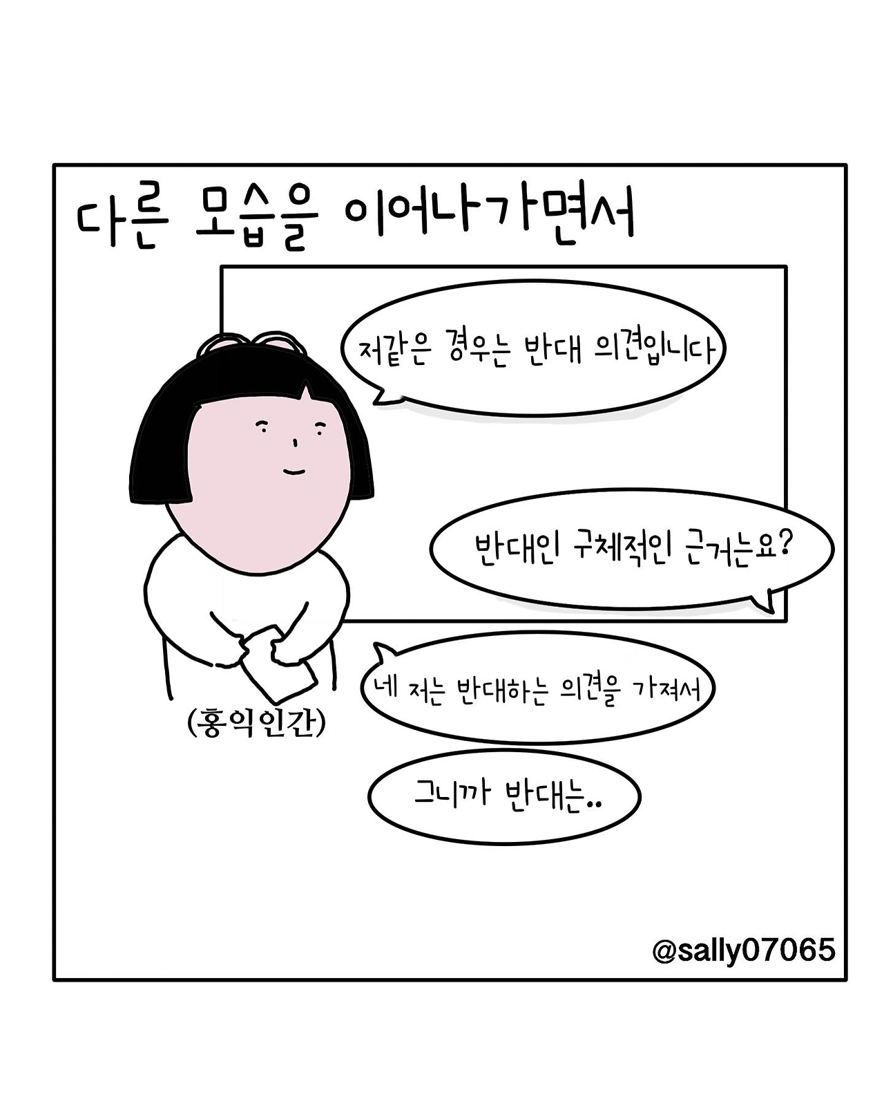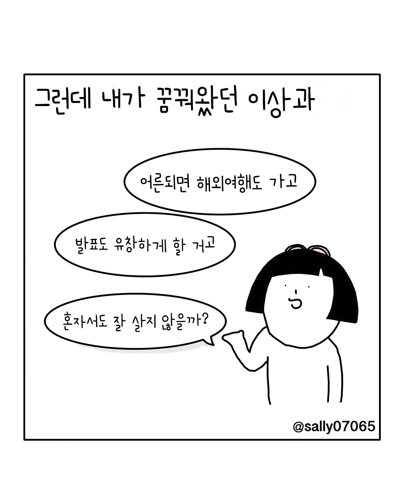 인스타계정sally07065에서 일상툰을 올리며, 블로그운영(밑 url 주소), 책 ‘내향적인 사람 중 가장 외향적인 사람’을 썼습니다