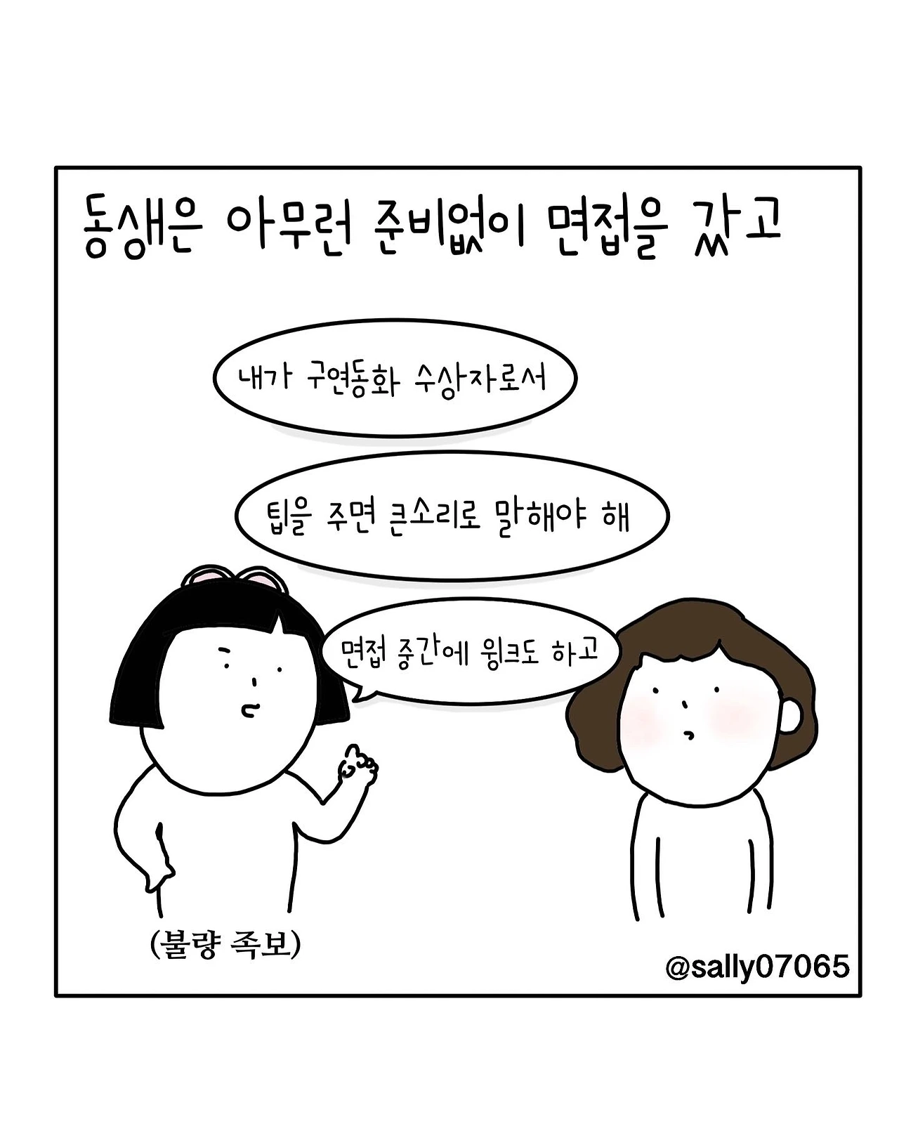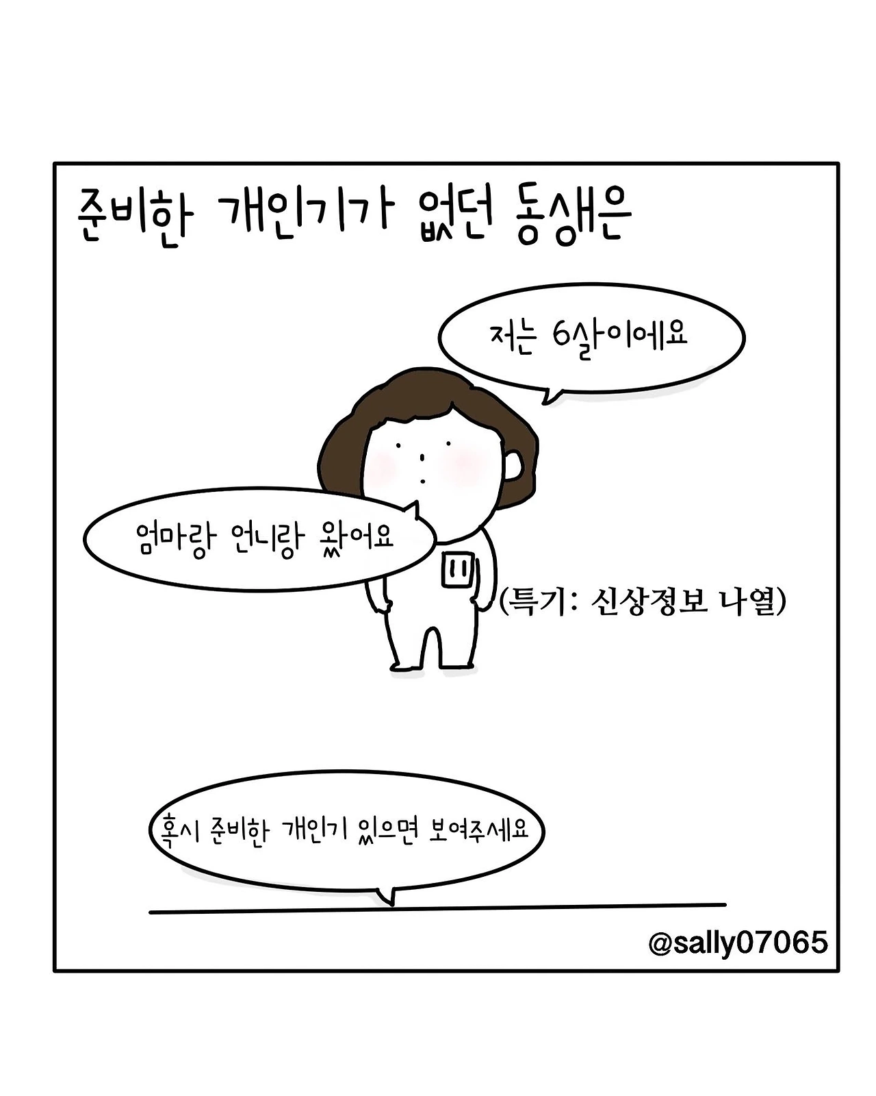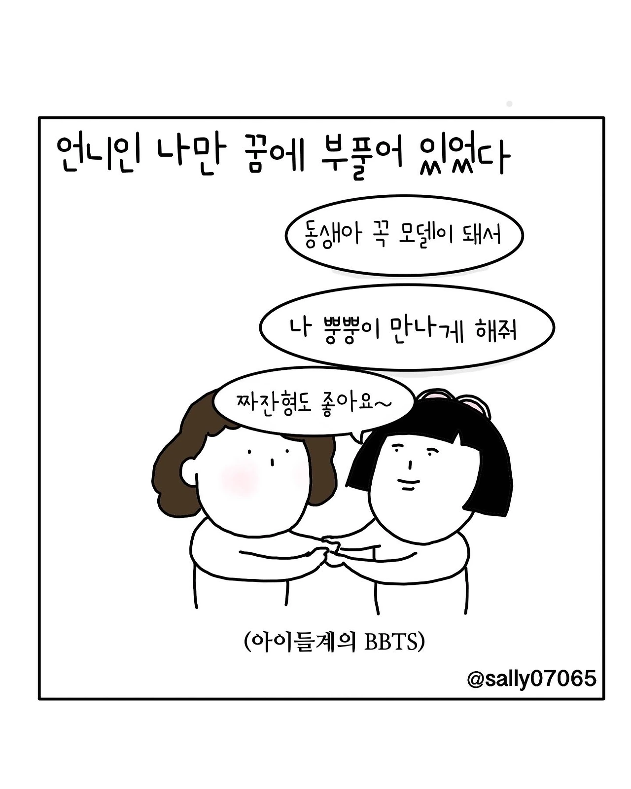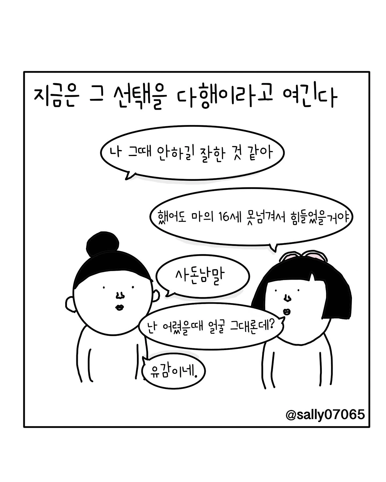 인스타계정sally07065에서 일상툰을 올리며, 블로그운영(밑 url 주소), 책 ‘내향적인 사람 중 가장 외향적인 사람’을 썼습니다