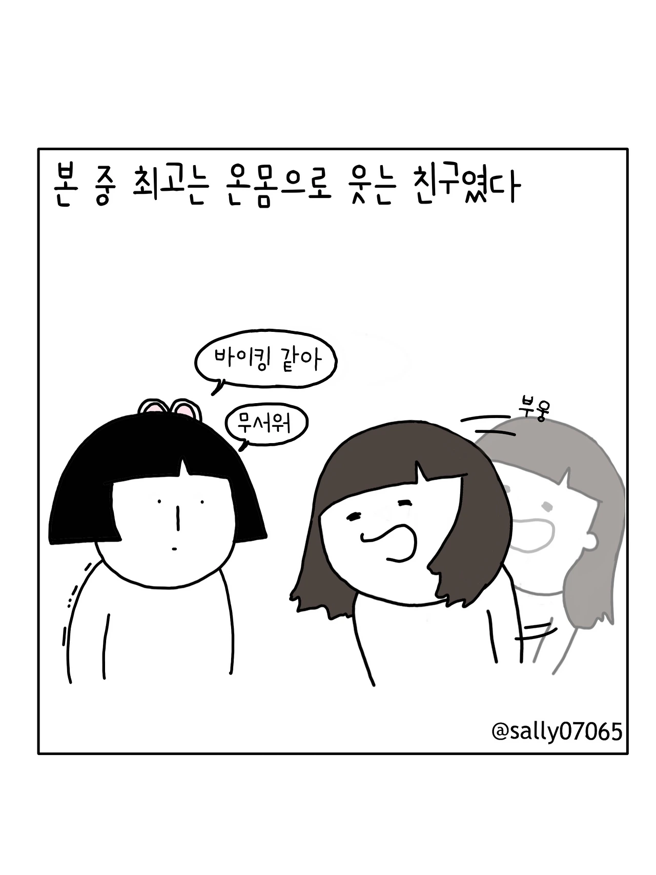 인스타계정sally07065에서 일상툰을 올리며, 블로그운영(밑 url 주소), 책 ‘내향적인 사람 중 가장 외향적인 사람’을 썼습니다
