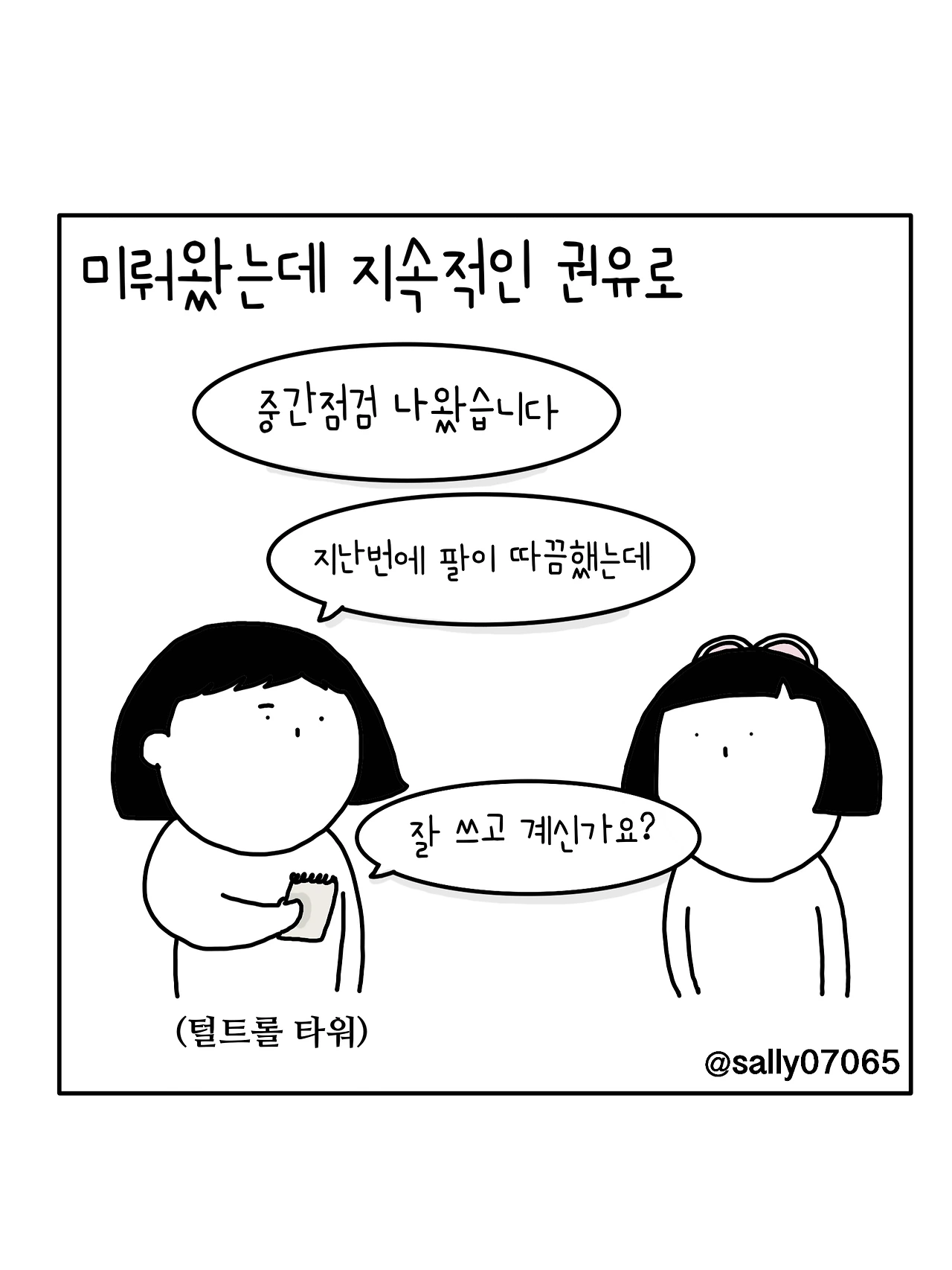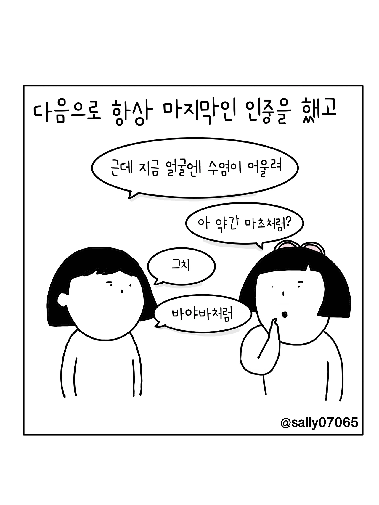 인스타계정sally07065에서 일상툰을 올리며, 블로그운영(밑 url 주소), 책 ‘내향적인 사람 중 가장 외향적인 사람’을 썼습니다