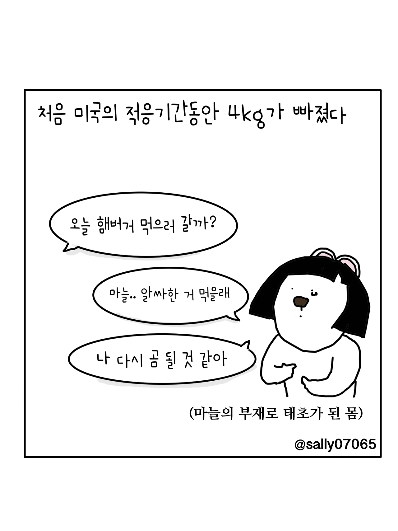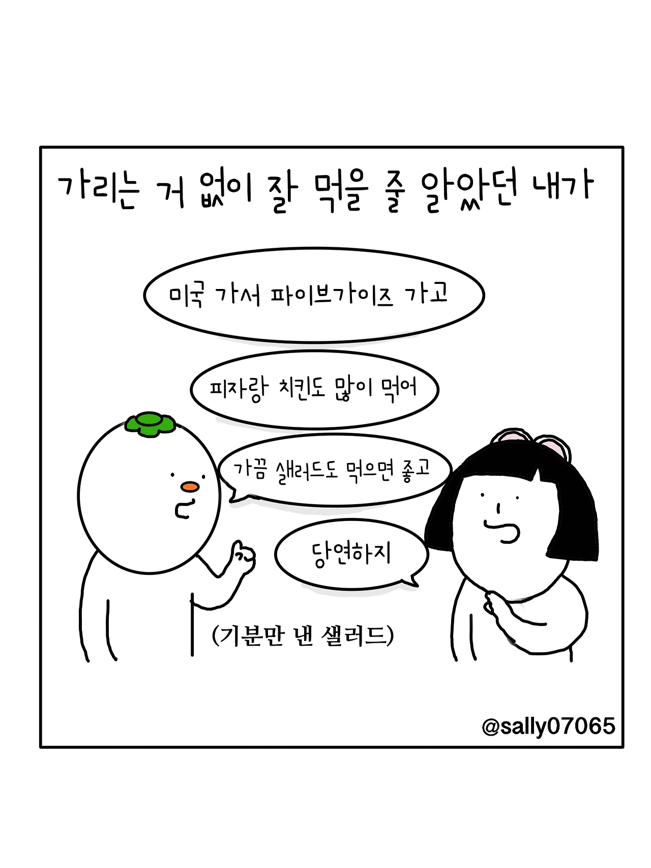 인스타계정sally07065에서 일상툰을 올리며, 블로그운영(밑 url 주소), 책 ‘내향적인 사람 중 가장 외향적인 사람’을 썼습니다