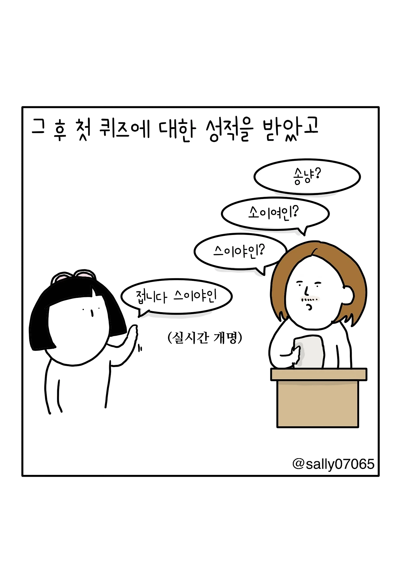 인스타계정sally07065에서 일상툰을 올리며, 블로그운영(밑 url 주소), 책 ‘내향적인 사람 중 가장 외향적인 사람’을 썼습니다
