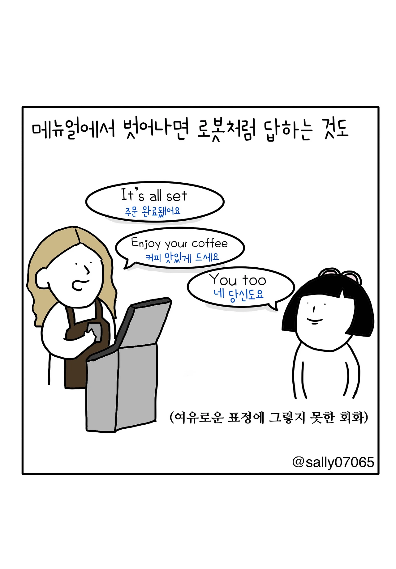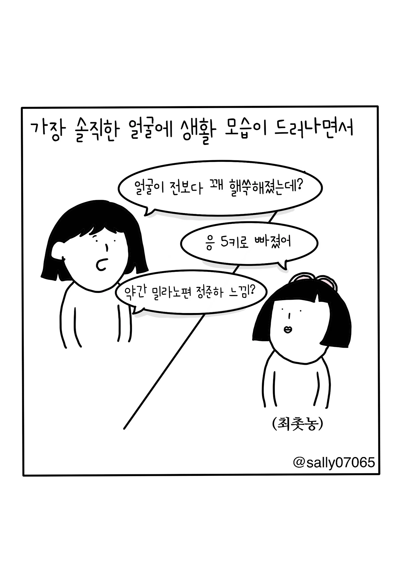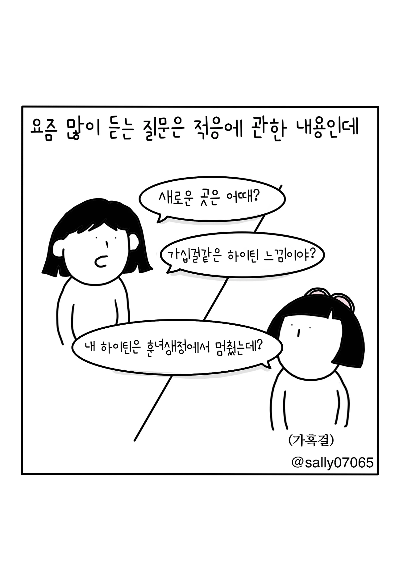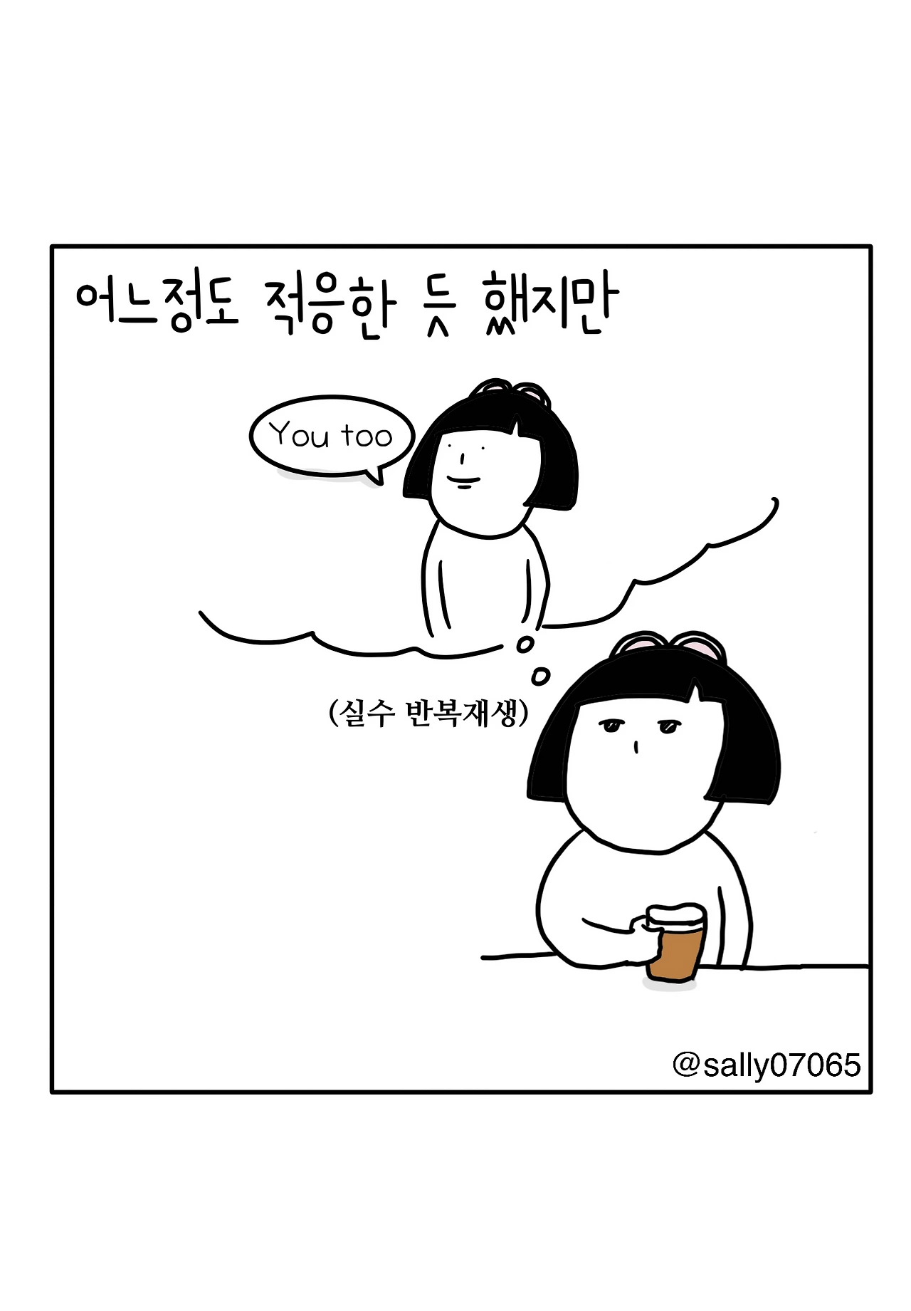 인스타계정sally07065에서 일상툰을 올리며, 블로그운영(밑 url 주소), 책 ‘내향적인 사람 중 가장 외향적인 사람’을 썼습니다
