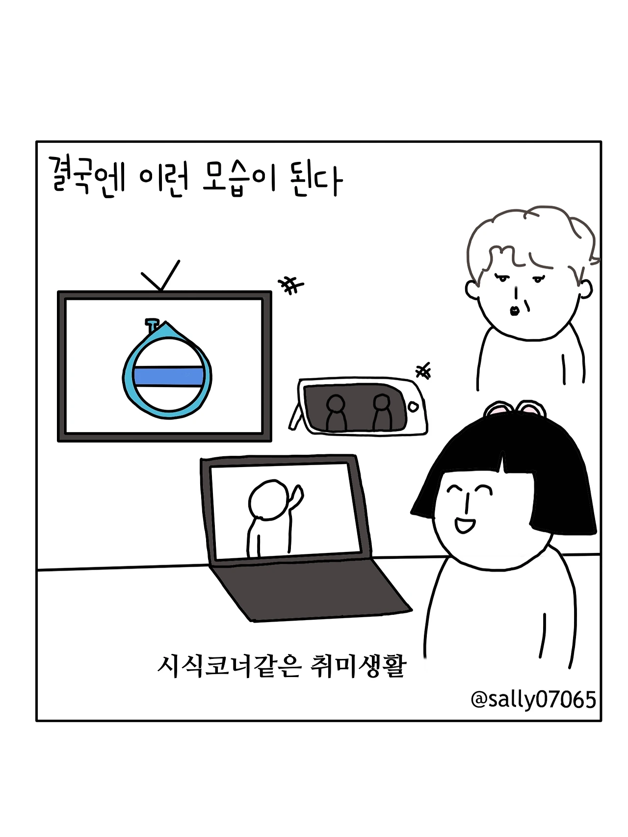 인스타계정sally07065에서 일상툰을 올리며, 블로그운영(밑 url 주소), 책 ‘내향적인 사람 중 가장 외향적인 사람’을 썼습니다
