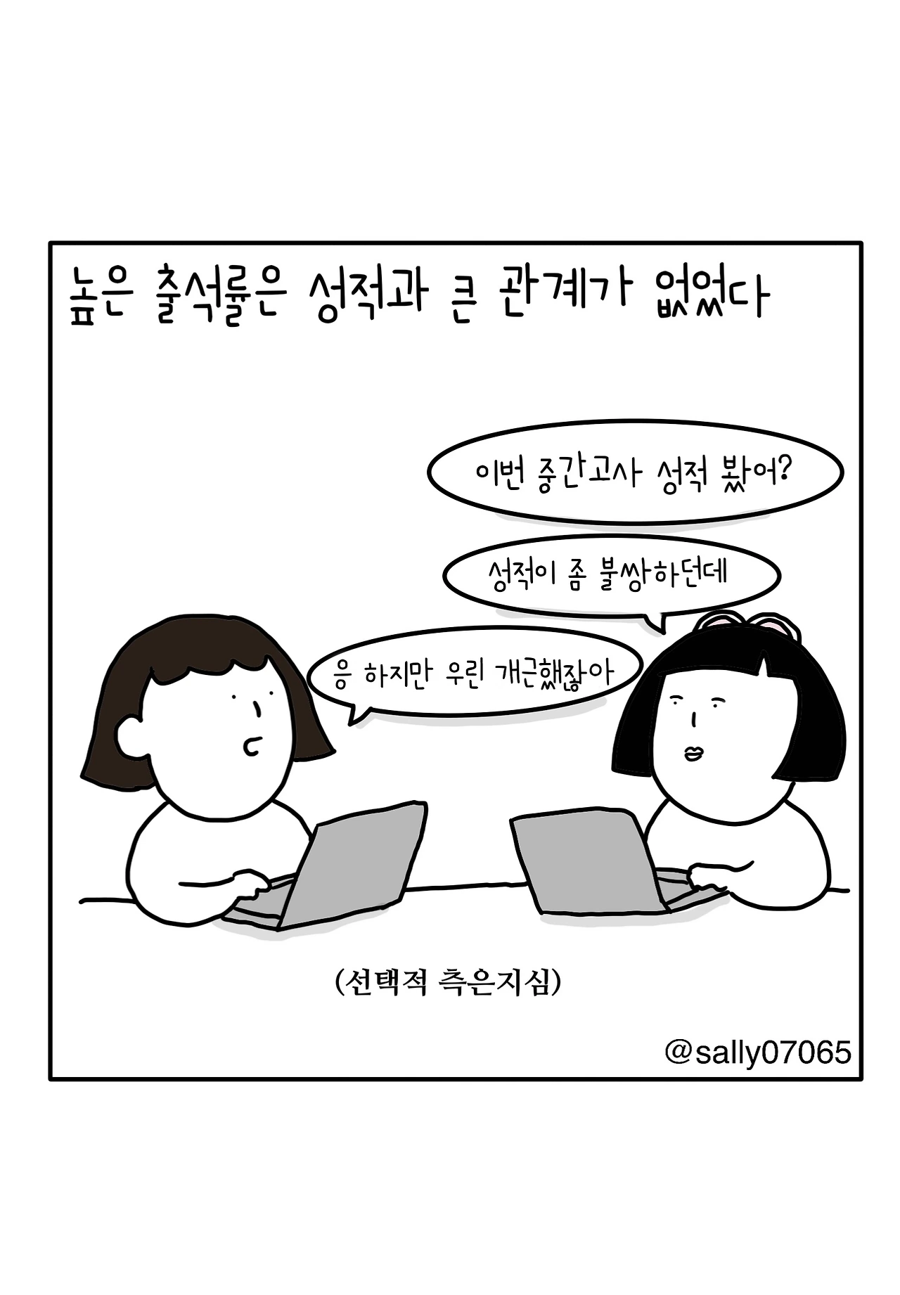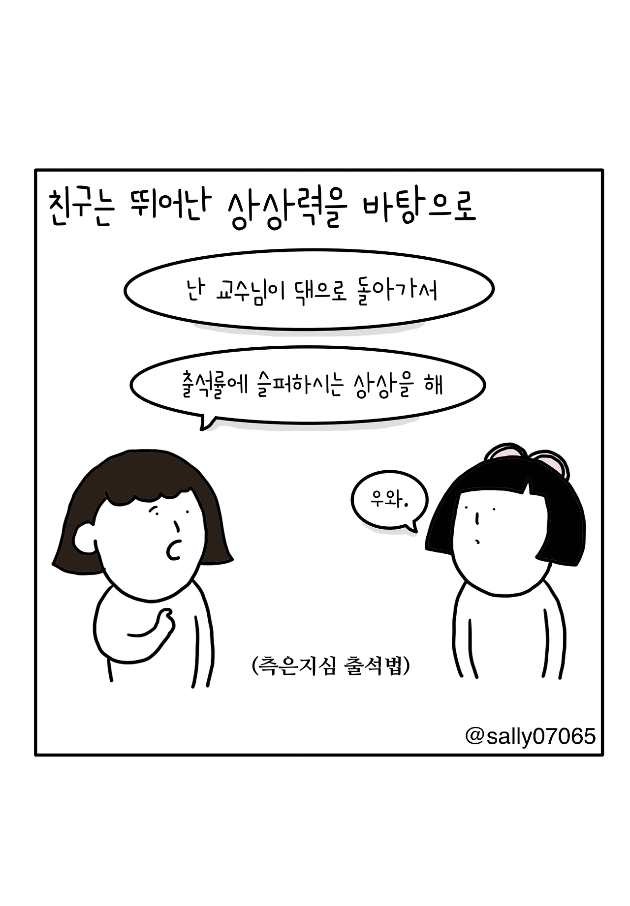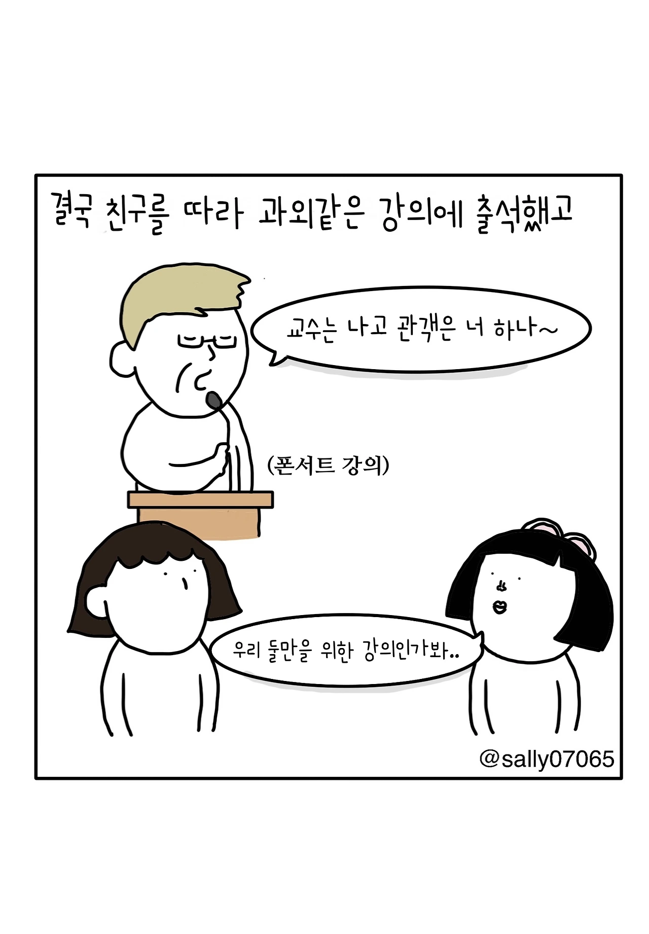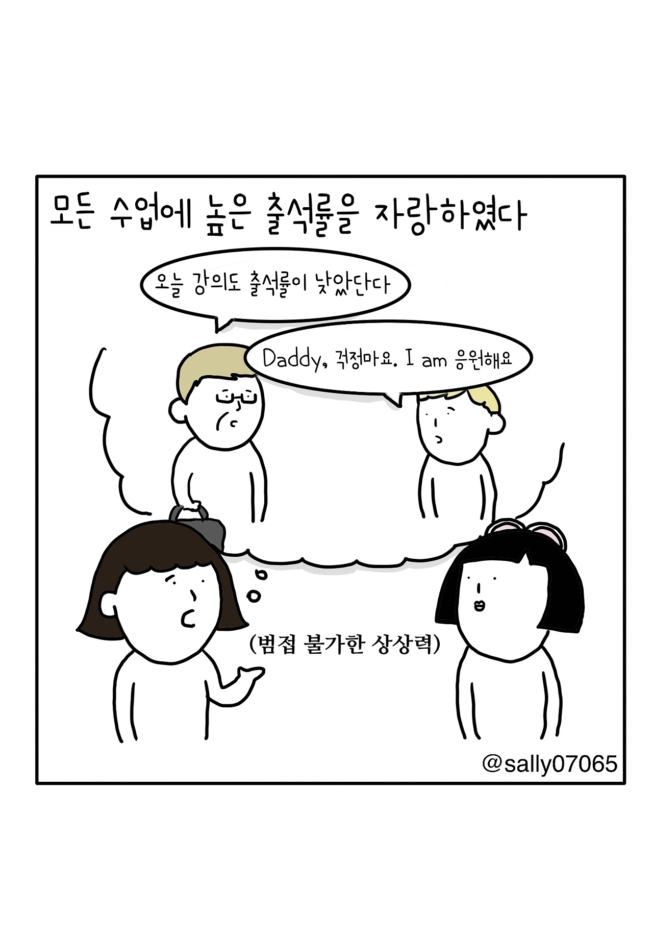 인스타계정sally07065에서 일상툰을 올리며, 블로그운영(밑 url 주소), 책 ‘내향적인 사람 중 가장 외향적인 사람’을 썼습니다