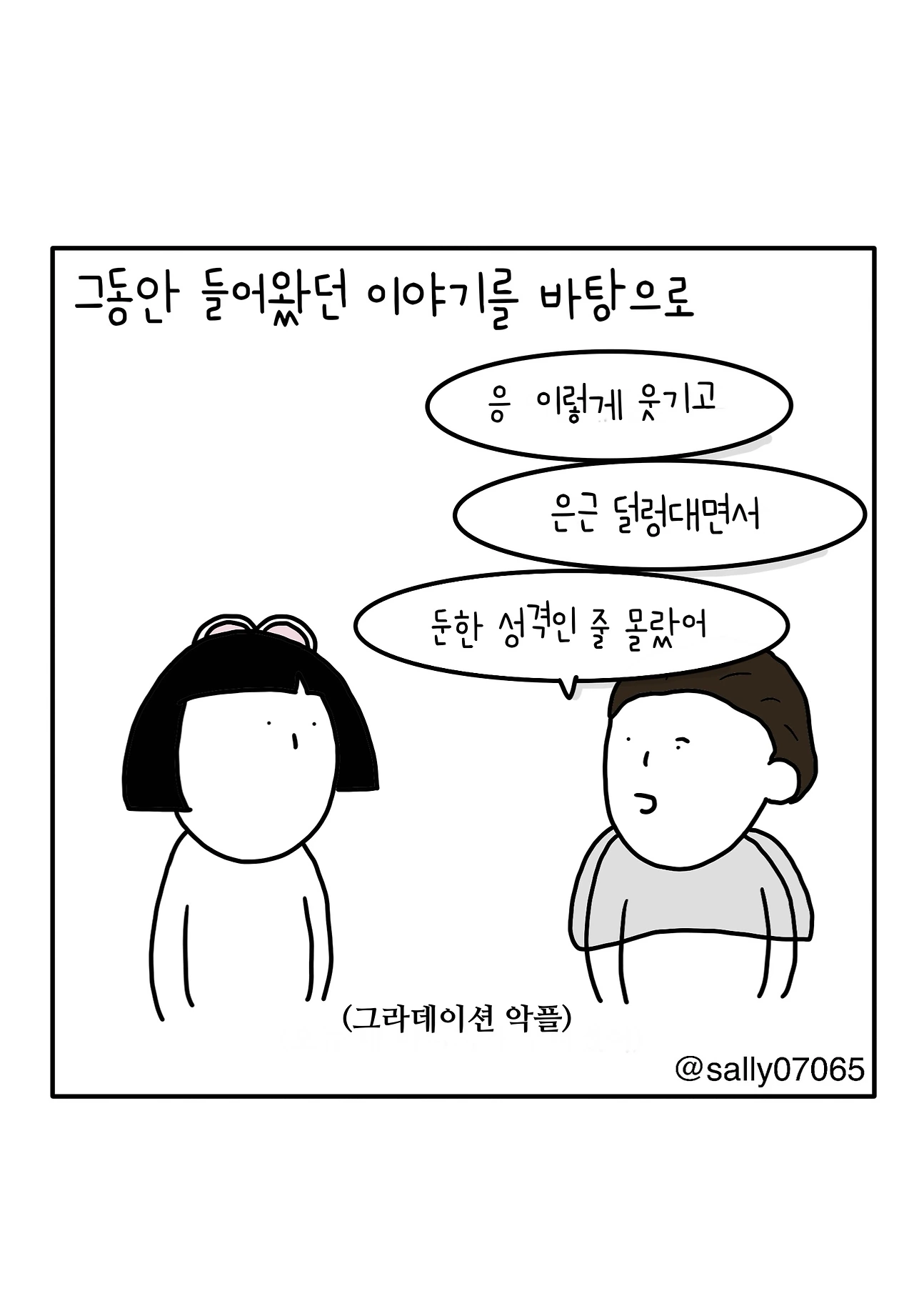 인스타계정sally07065에서 일상툰을 올리며, 블로그운영(밑 url 주소), 책 ‘내향적인 사람 중 가장 외향적인 사람’을 썼습니다