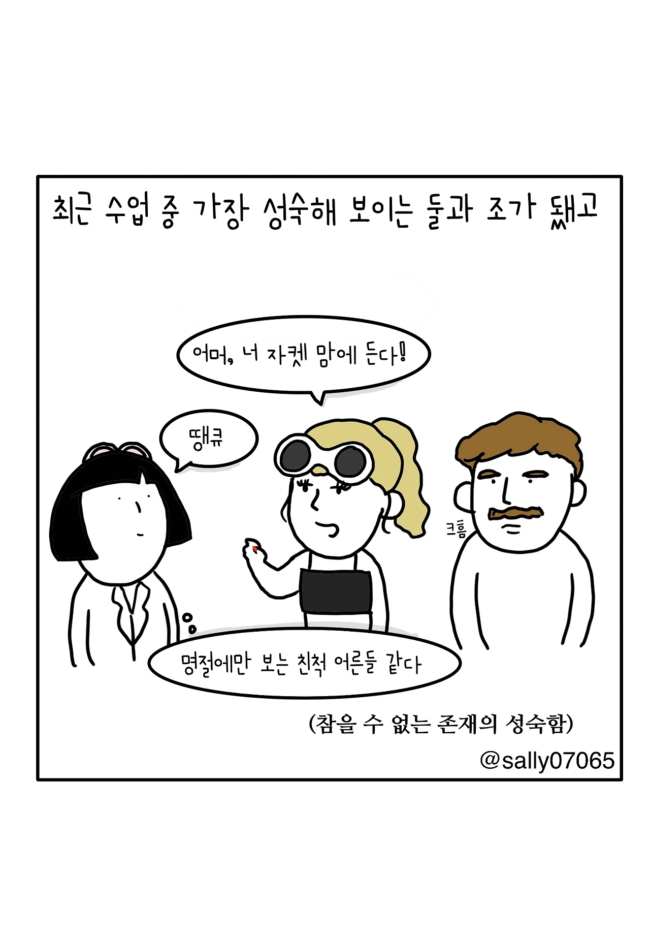 인스타계정sally07065에서 일상툰을 올리며, 블로그운영(밑 url 주소), 책 ‘내향적인 사람 중 가장 외향적인 사람’을 썼습니다